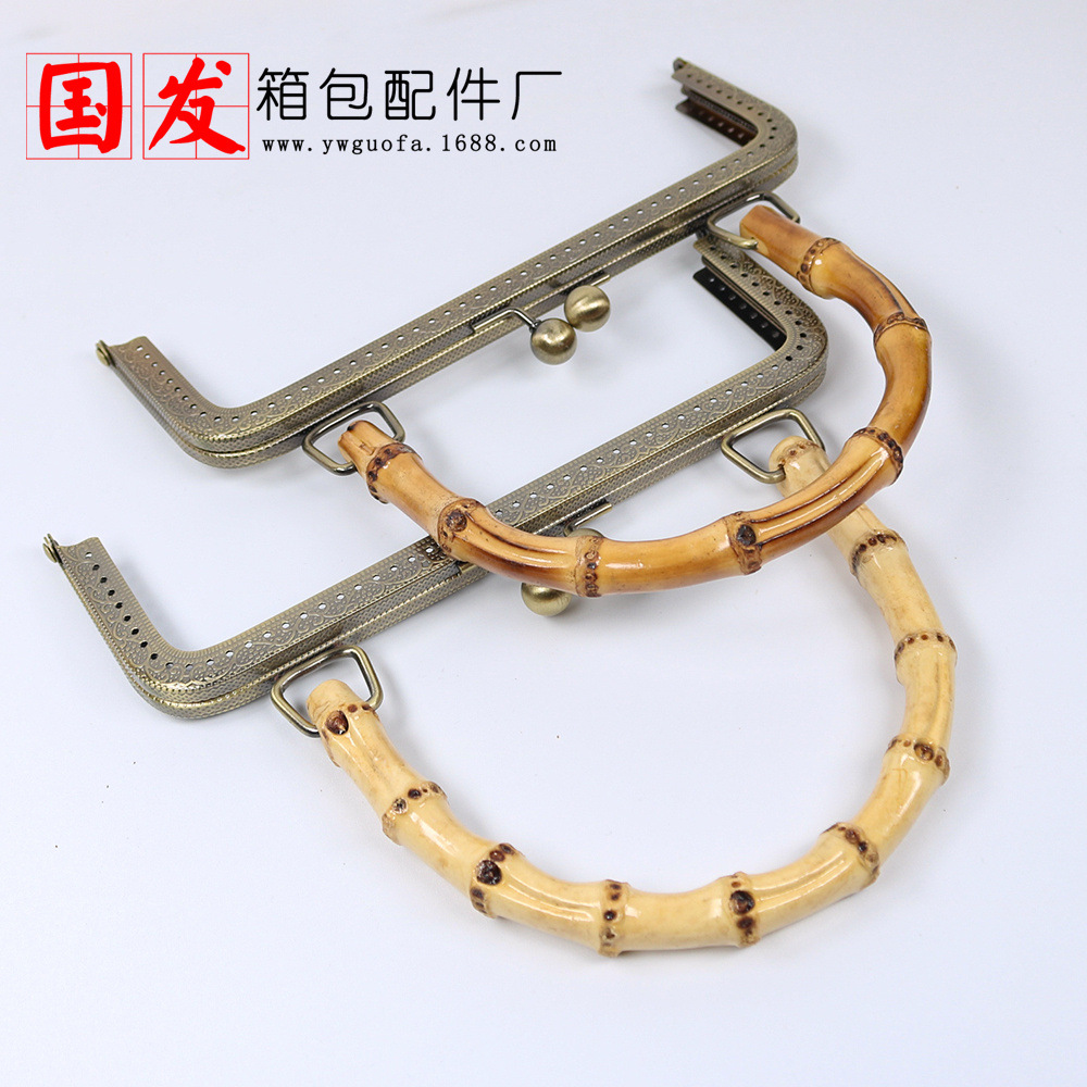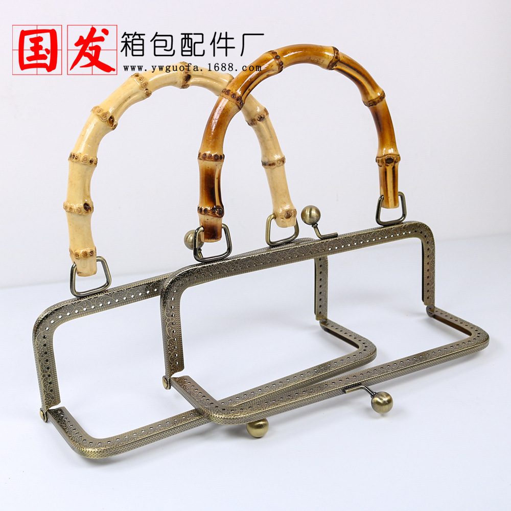 ネジ穴あり25*7.5cm角型エンボス玉口金古銅口金バッグアクセサリー