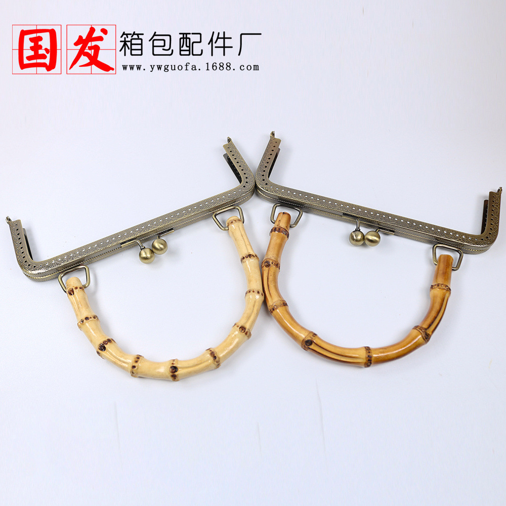 ピンホール手縫い 20 センチメートル正方形エンボス竹ハンドルゴールド本物の竹バッグアクセサリー