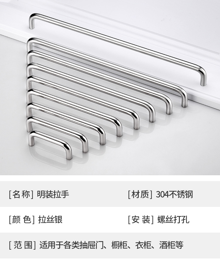 不锈钢实心拉手厨房门衣柜门抽屉现代简约把手工业设备仪器U型提