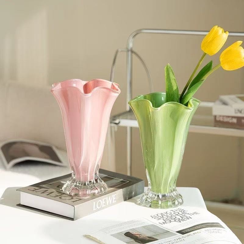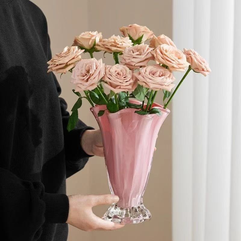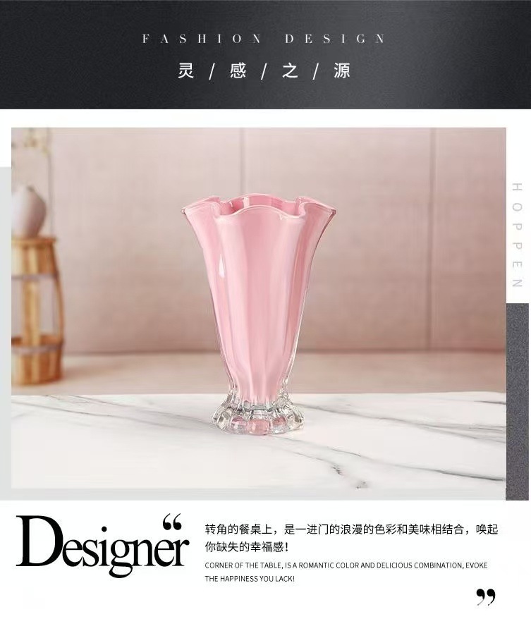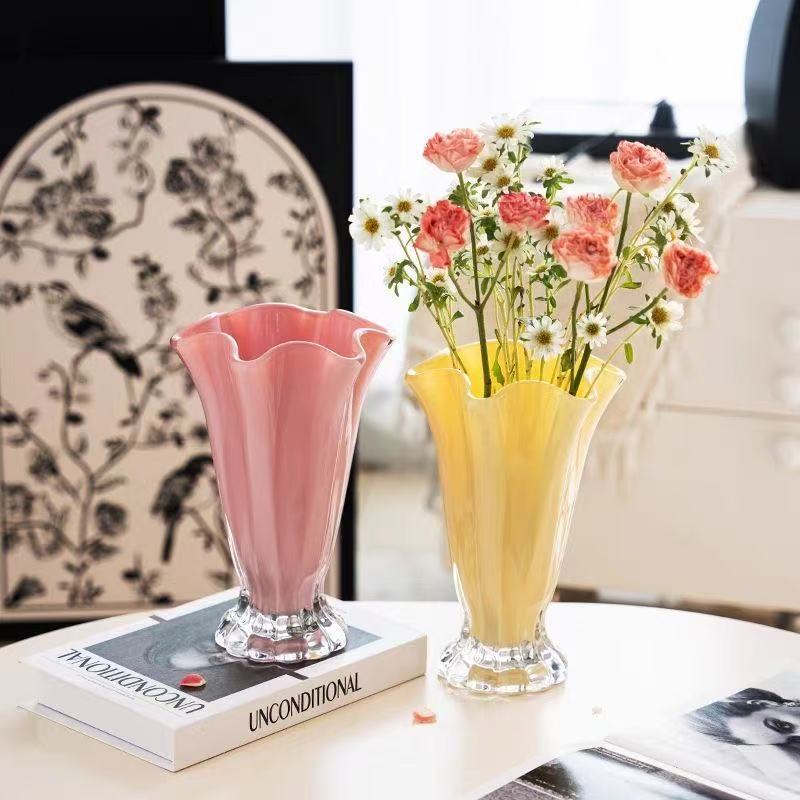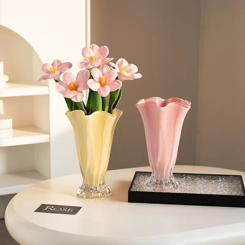 モダンなシンプルなガラスの花瓶の軽い贅沢な高級感のある花びらの装飾花器のリビングルームの生け花の食卓の置物