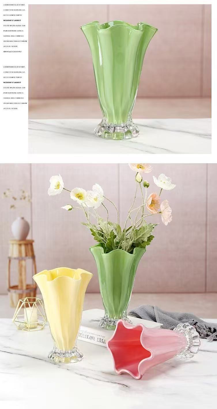 ボヘミアン風透明ガラスカラー花瓶ヨーロッパ式家庭装飾品水培花飾り生け花花瓶卸売り