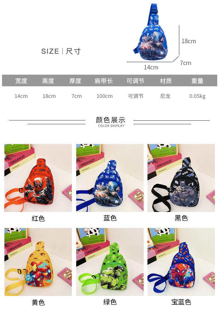 子供用カバン男女可愛い胸カバンクロスボーダー新型スパイダーマン漫画ウエストバッグ洋気男児斜め掛けカバン