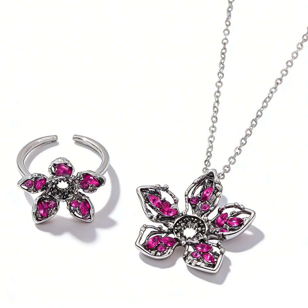 热销时尚怪奇物语食人花镶钻活口戒指吊坠项链套装个性合金饰品