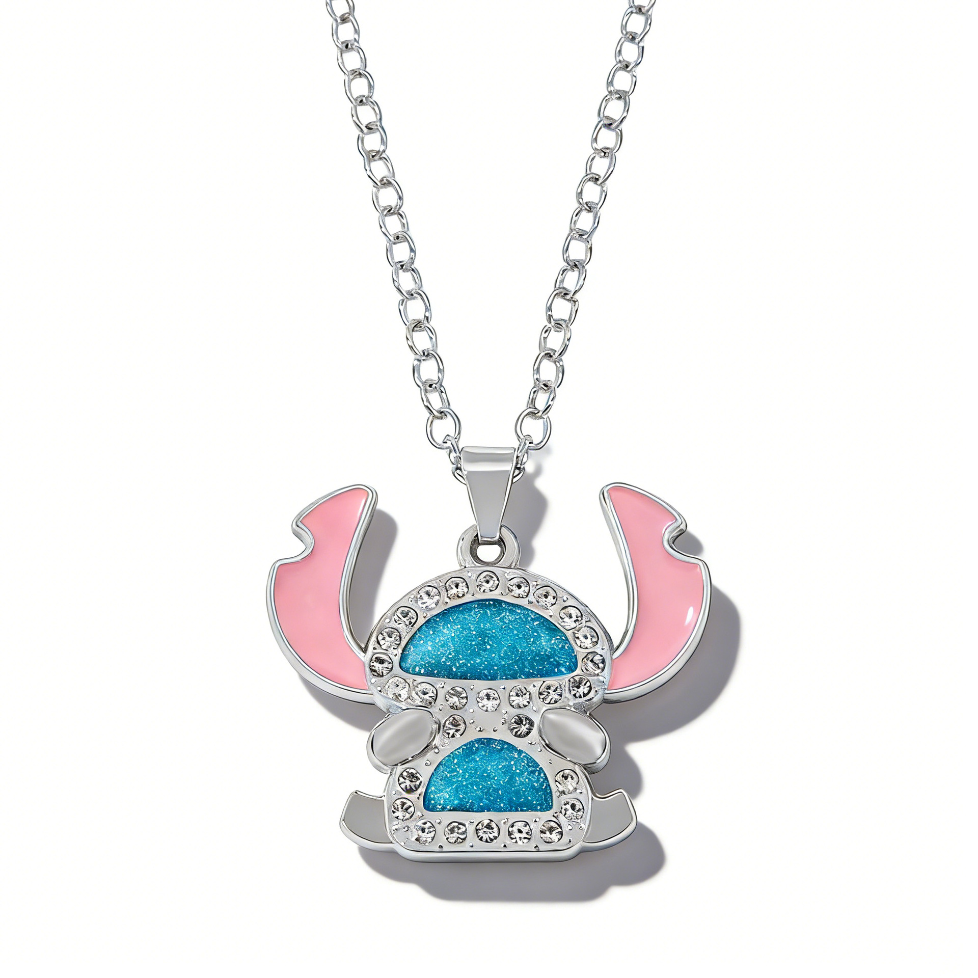 亚马逊跨境热销卡通可爱史迪仔微镶滴油女式锁骨项链COS服饰配饰