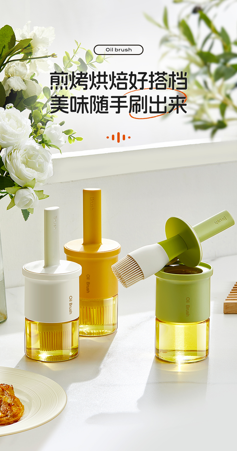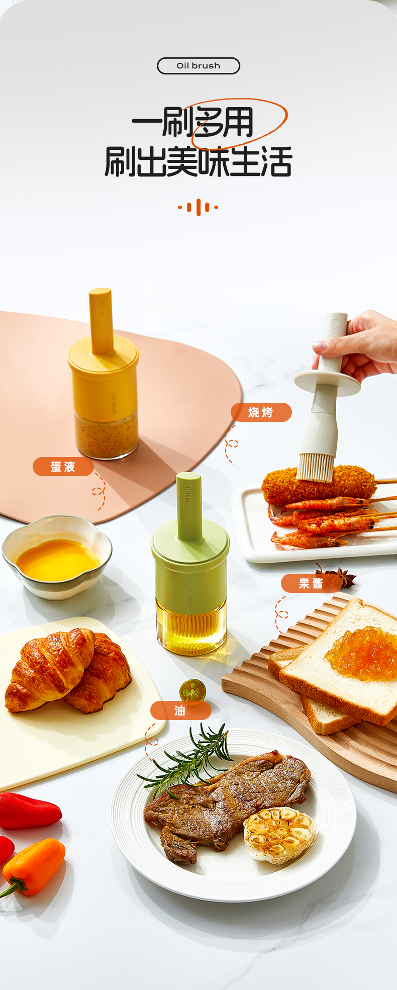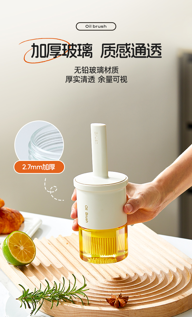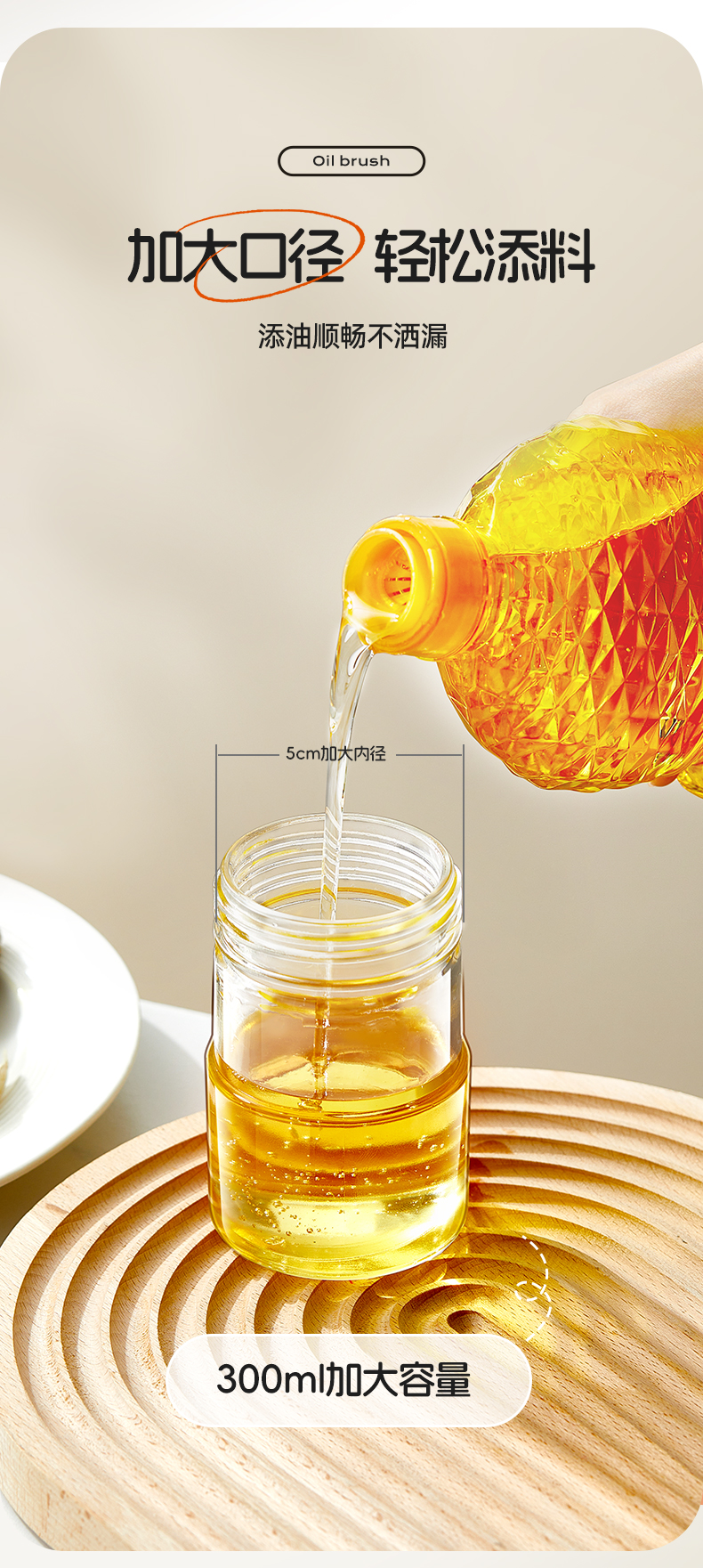 家庭用オイルブラシ高温耐性一体型ガラスオイルボトルバーベキューベーキング食品グレードのキッチンオイルブラシシリコンブラシ
