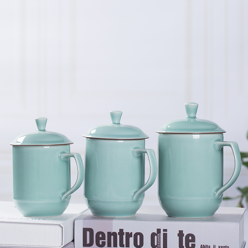 龙泉青瓷办公杯茶杯带手柄陶瓷中式复古防烫会议茶水杯马克杯子