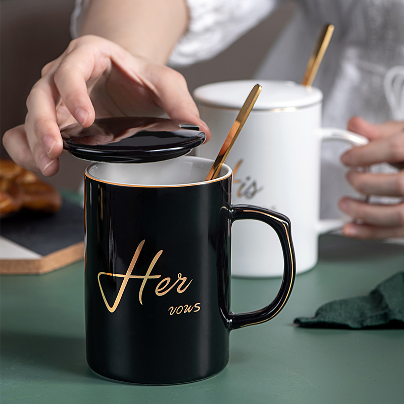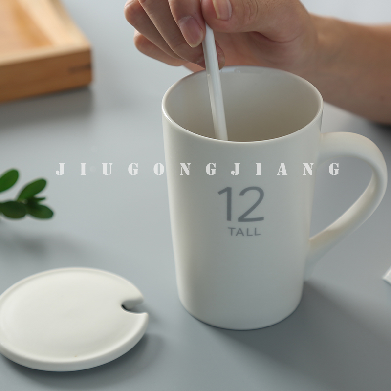 创意陶瓷杯子 马克杯带盖勺 搪瓷杯水杯 ins简约大容量牛奶咖啡杯