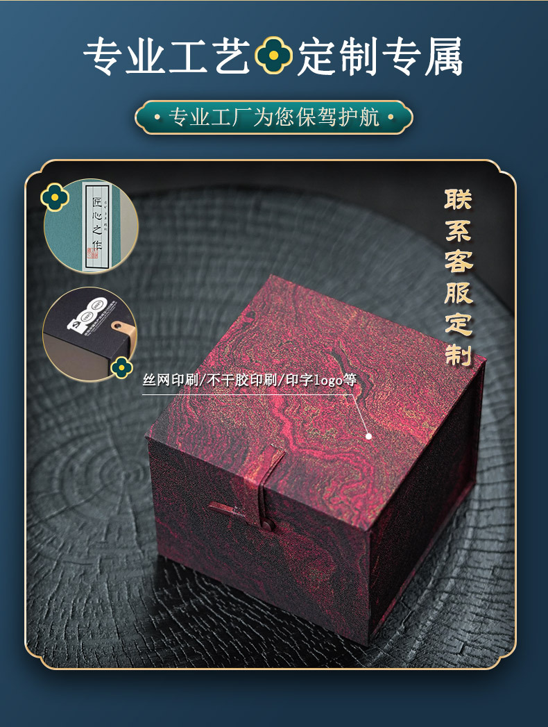 マジックテープの皮は錦箱の新しい中国式の紫砂の壺を掛けて杯の包装箱の文を建てます。