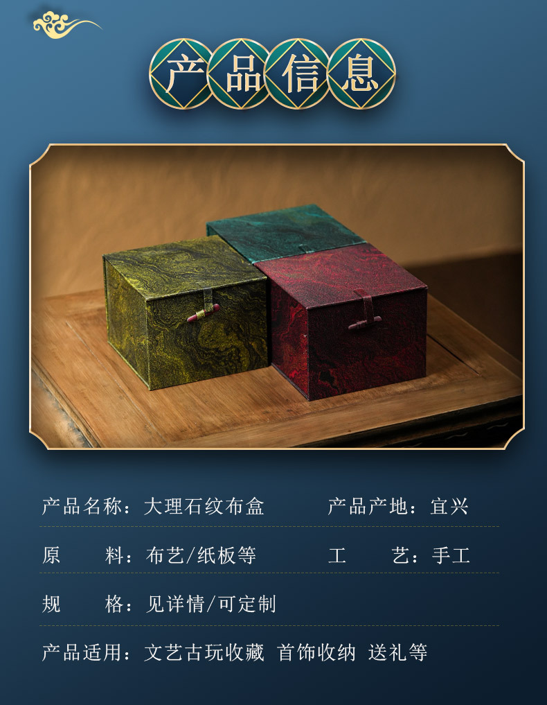 青布錦箱 国風文玩印鑑包装収納箱 紫砂壺 建盞 茶器錦箱