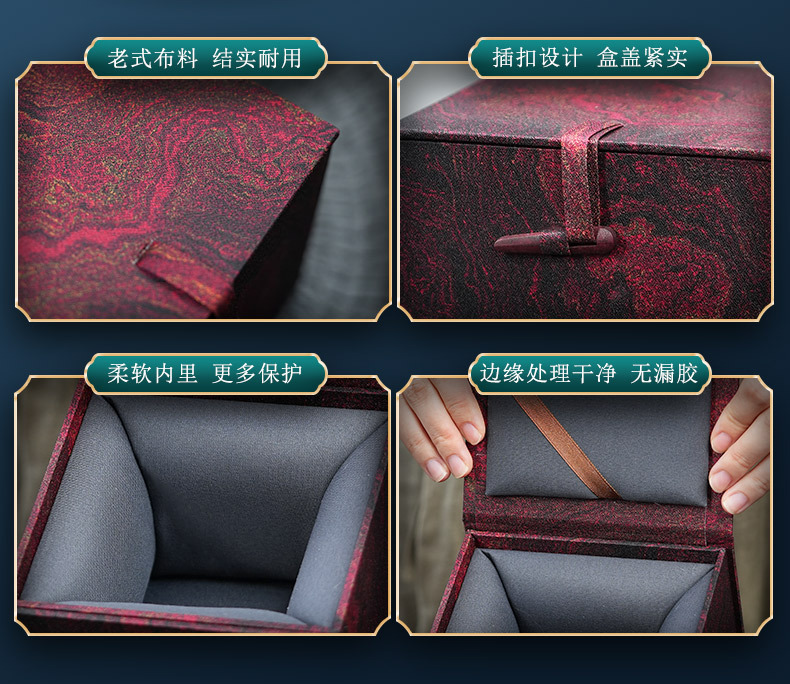 油絵布箱 レトロな中国風紫砂壺建盞茶器ギフトボックス 翡翠宝石包装錦箱