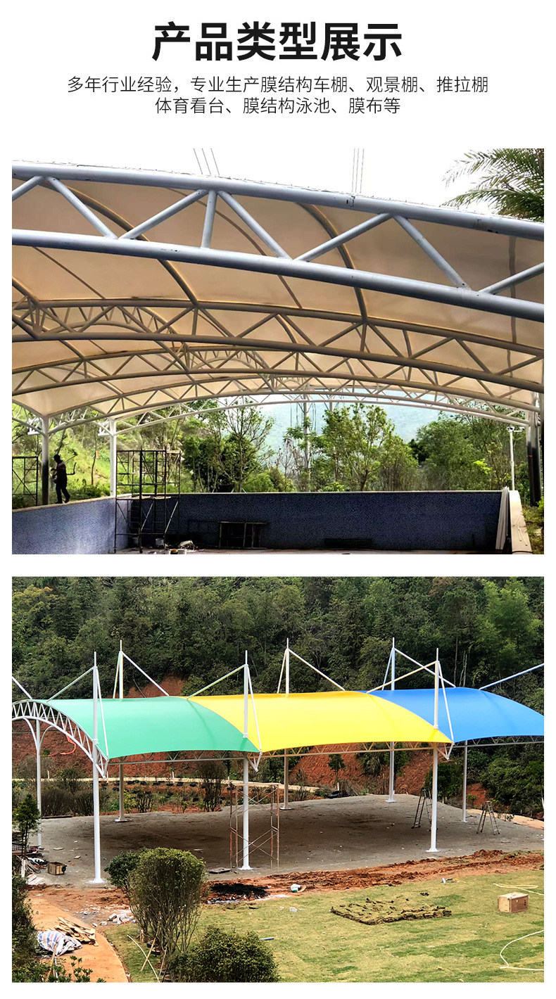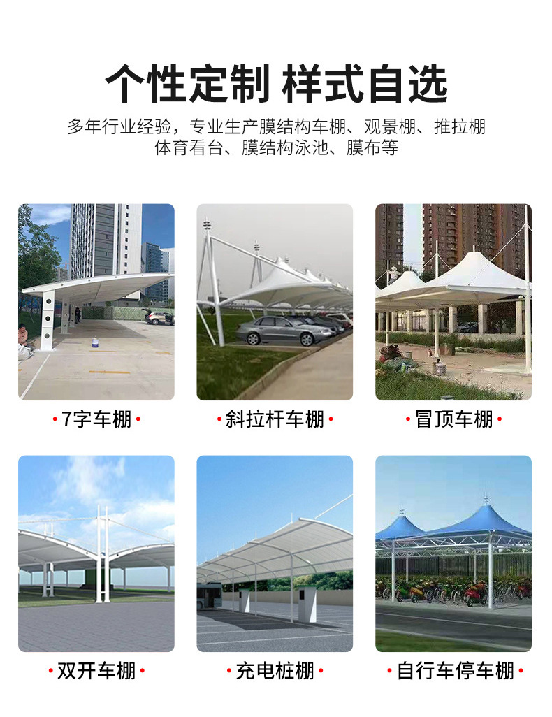 メーカー直供膜構造駐車場屋外車棚日よけ雨棚耐風張引き膜車棚工場区区
