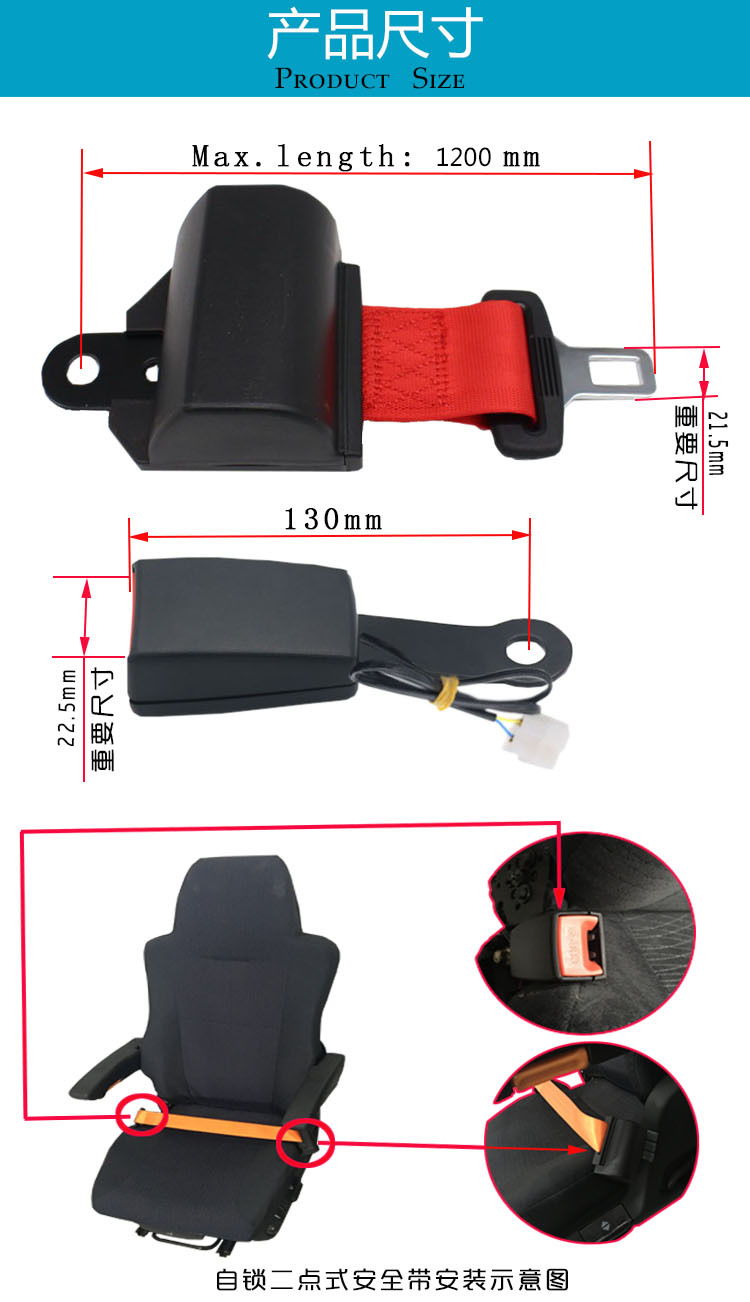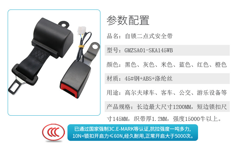 2点式セルフロックシートベルト自動車フォークリフトゴルフ車シート保険ベルト警報線メーカー直販