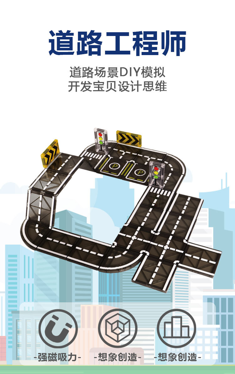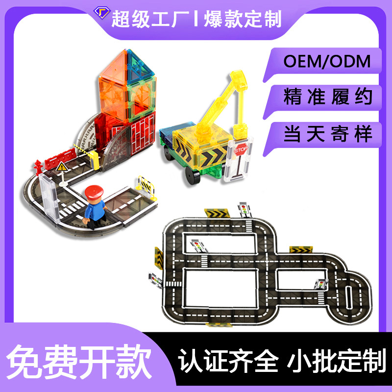 ソースクロスボーダー磁気ビルディングブロックマグネット道路磁気シート都市交通建設クレーンカラーウィンドウ磁気シートクロスボーダー