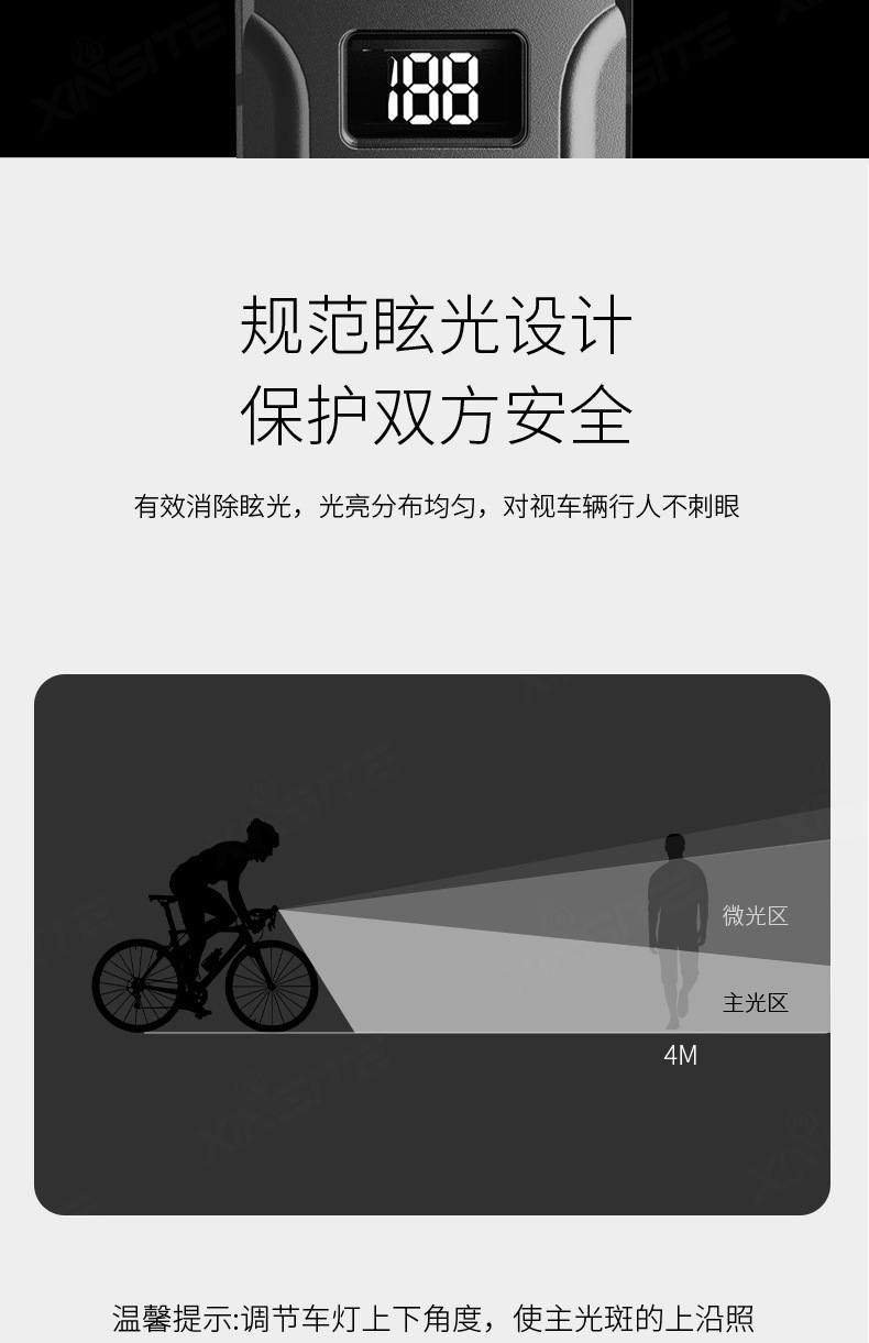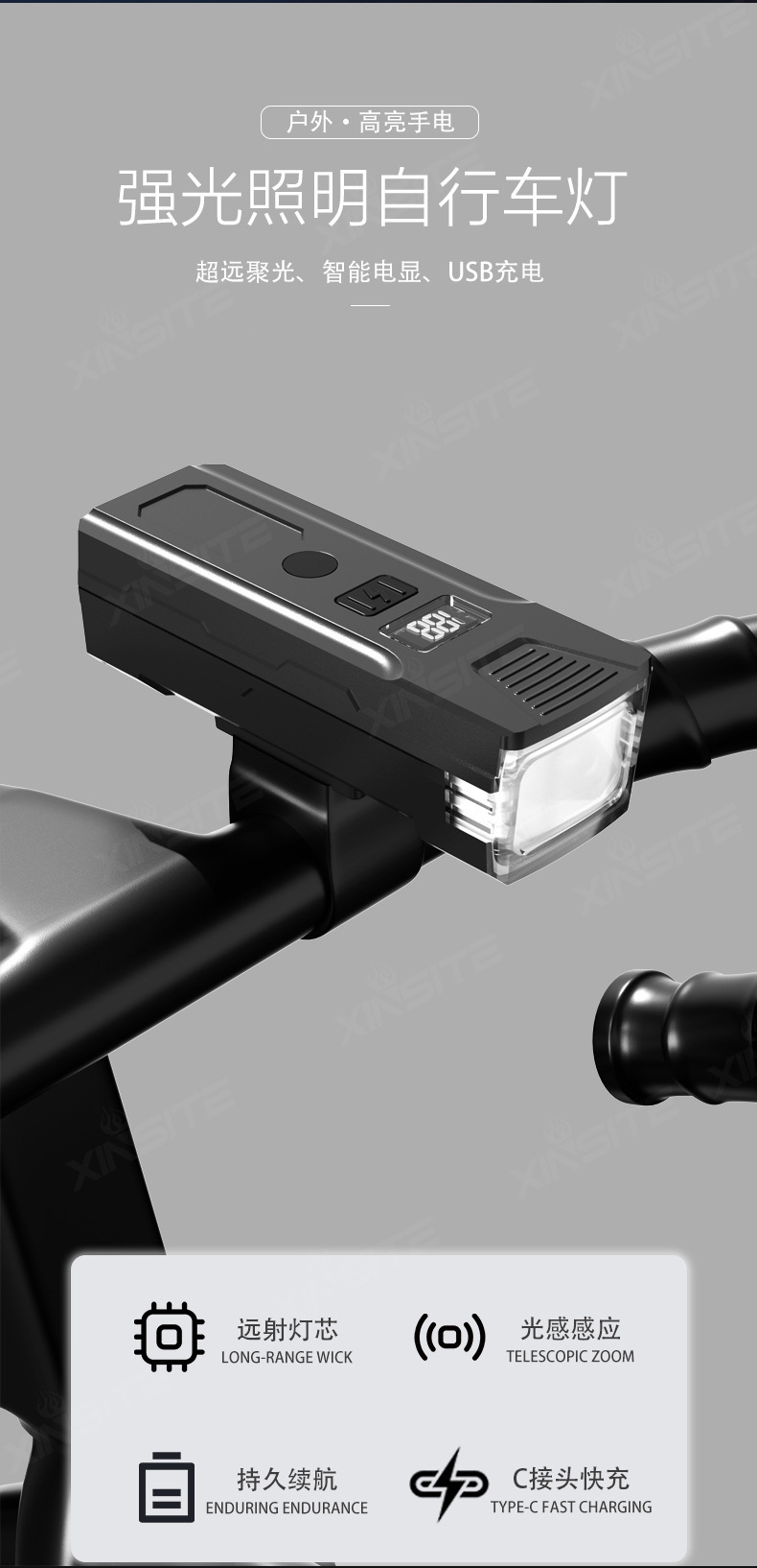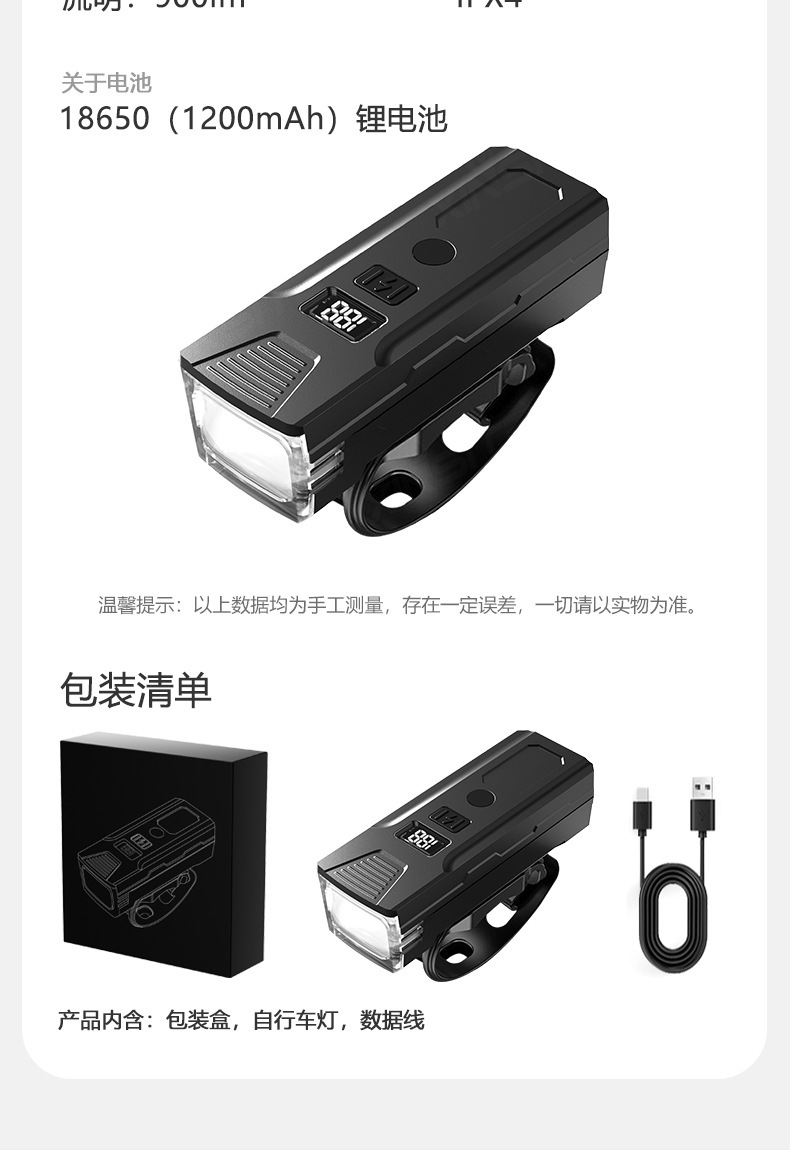 自転車ヘッドライト高ルーメン充電デジタルディスプレイサイクリングライト屋外夜間走行照明サイクリング機器固定ライト