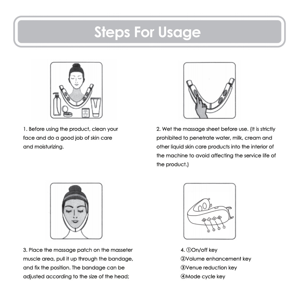 4-5档使用该产品3-5周,适用于中度压力的咬肌肥大和双下巴的人 ;