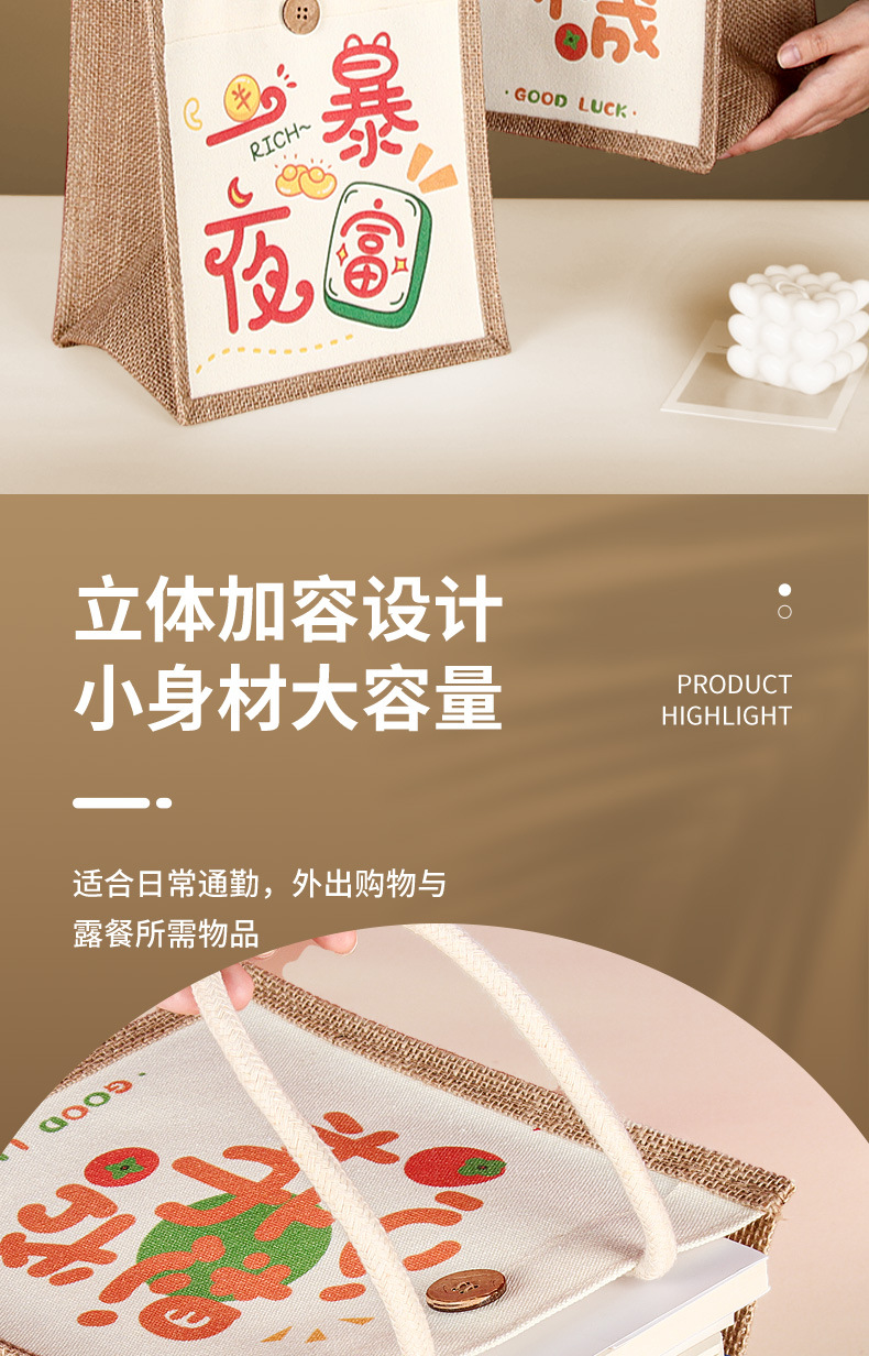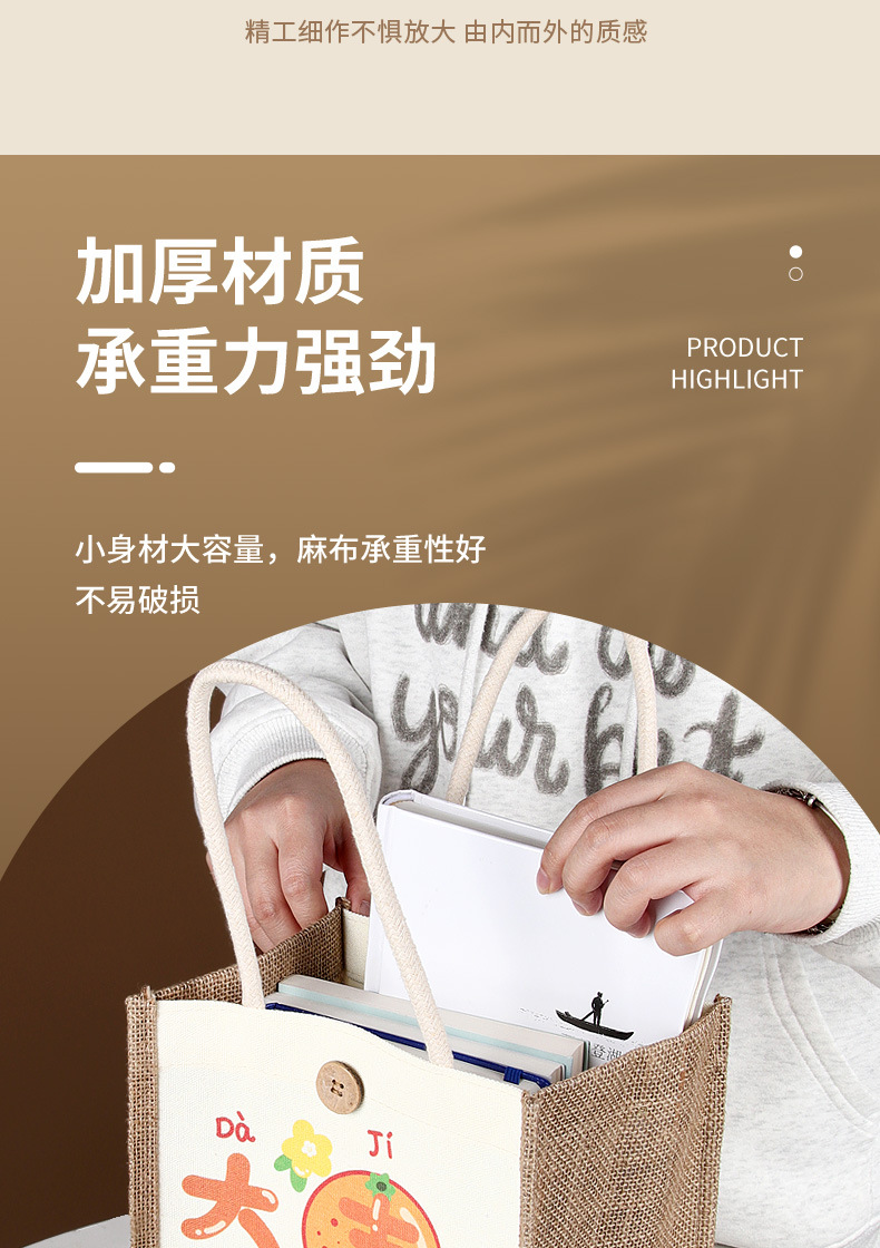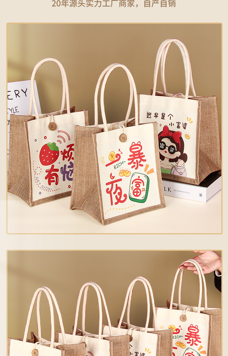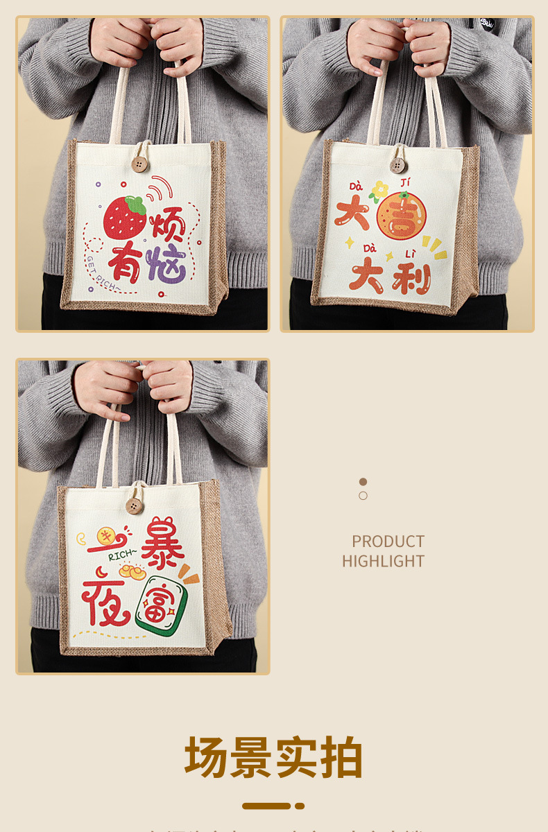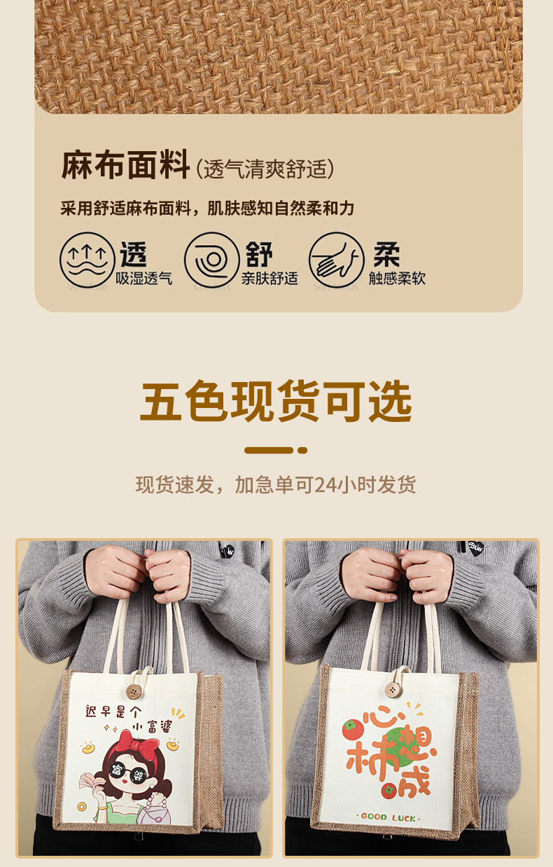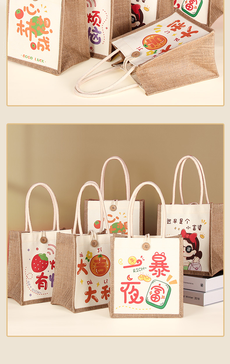 麻布袋定制印logo跨境外贸空白棉麻黄麻高级感亚麻手提袋定做涂鸦