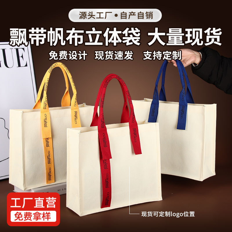 キャンバス立体トートバッグ手提げ流蘇ギフトバッグオーダーメードファッションリボンカバーキャンバスバッグオーダーメードロゴ