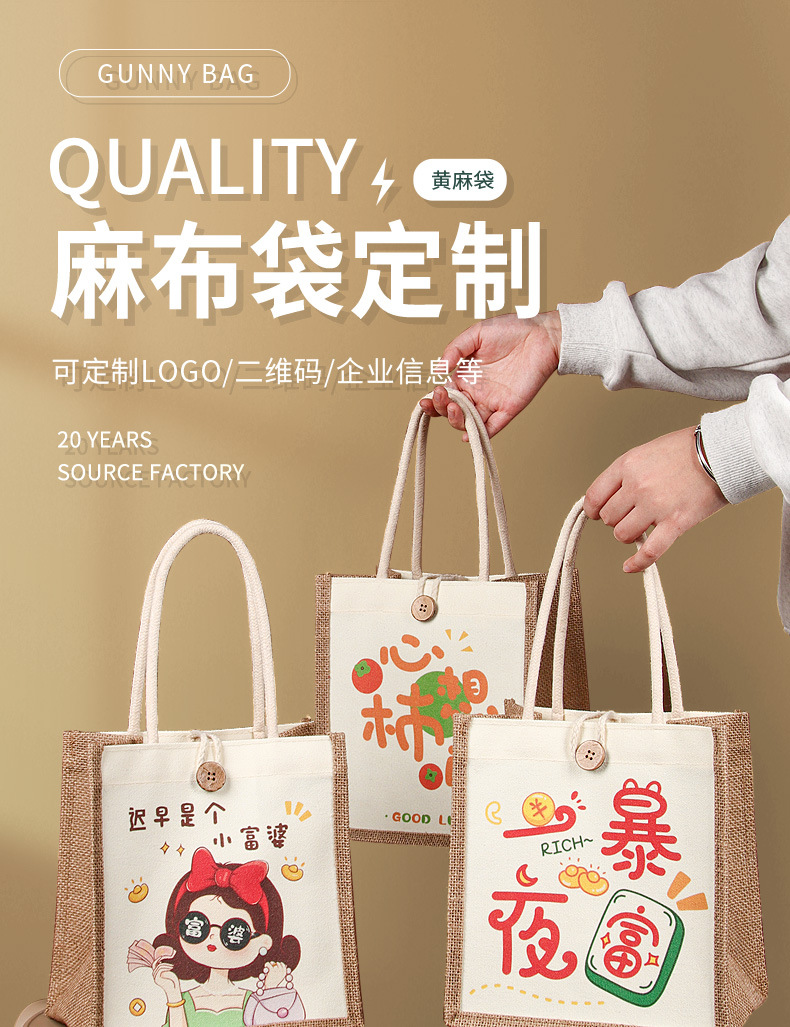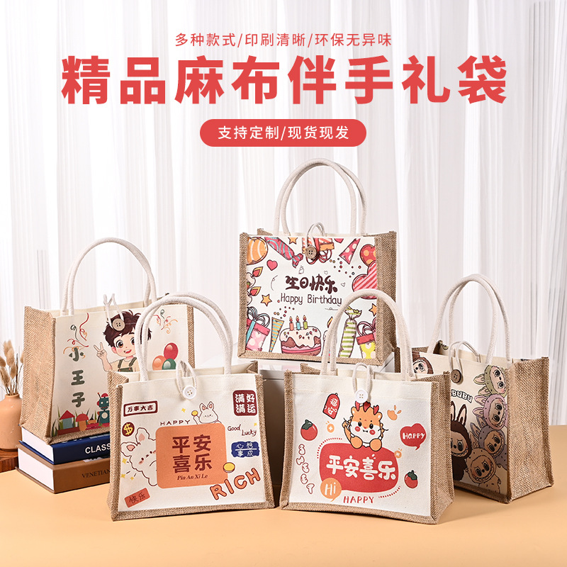 现货麻布袋定制亚麻手提袋印logo升学宴满月酒便携定做麻布伴手礼