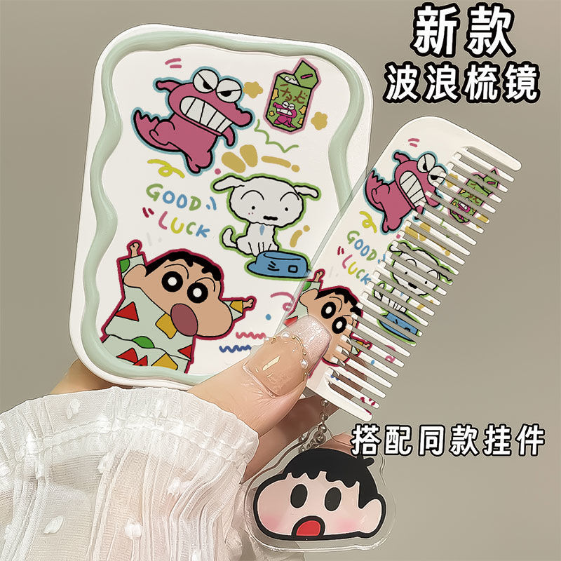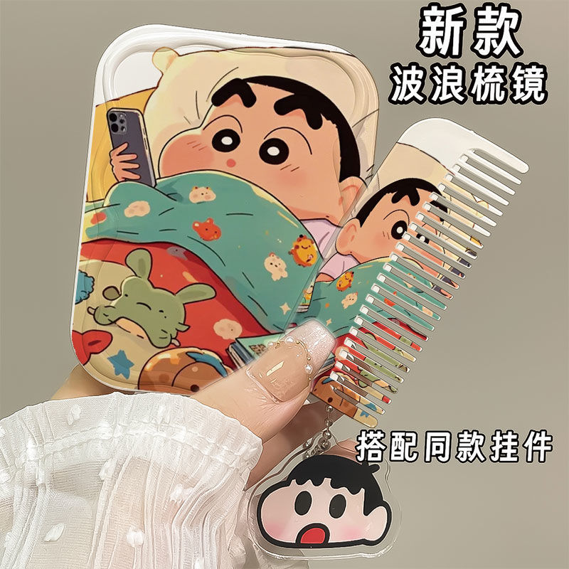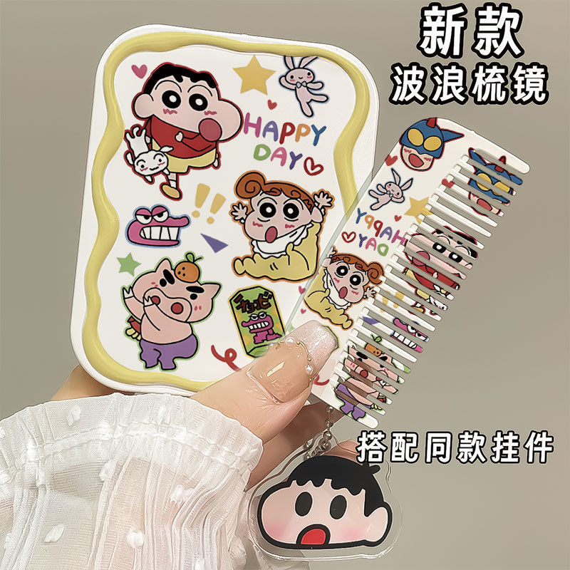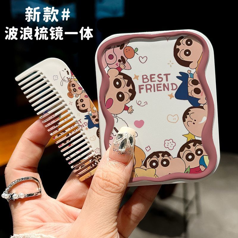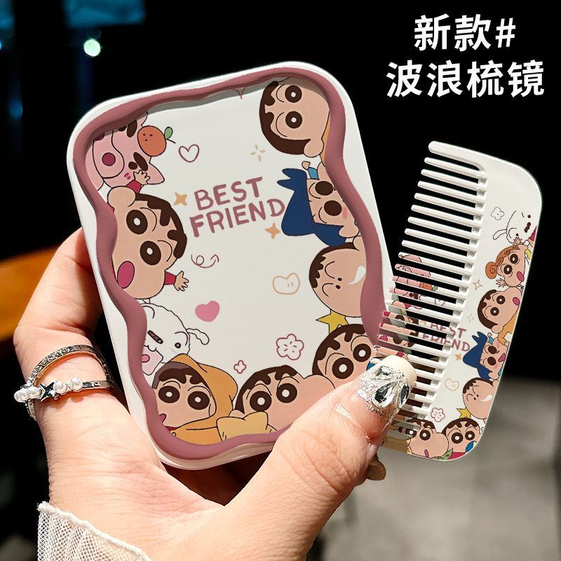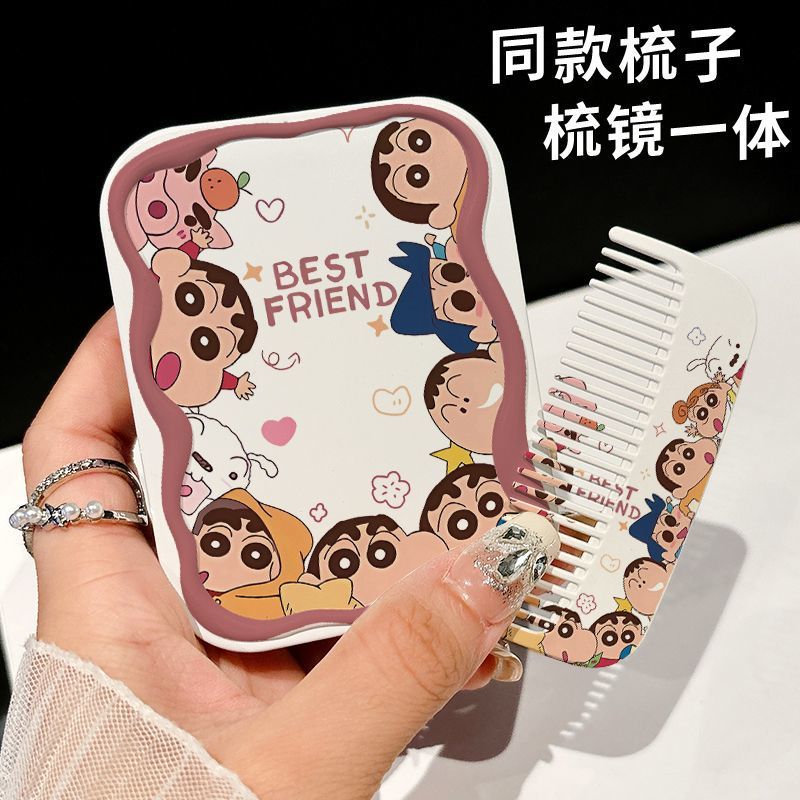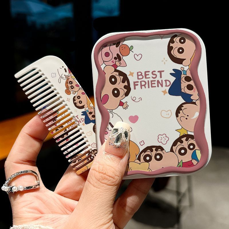 漫画クレヨンしんちゃん親友学生手持ち化粧鏡ポータブル折りたたみミニ化粧鏡とコームツーインワン