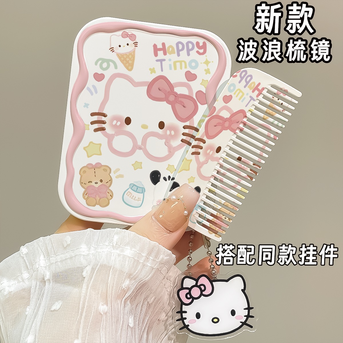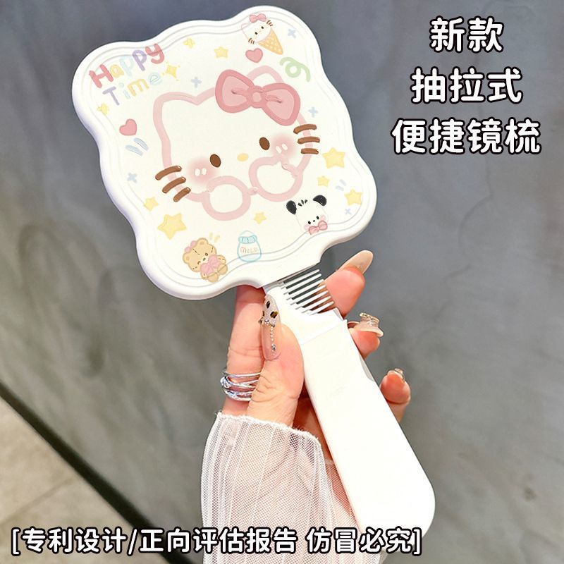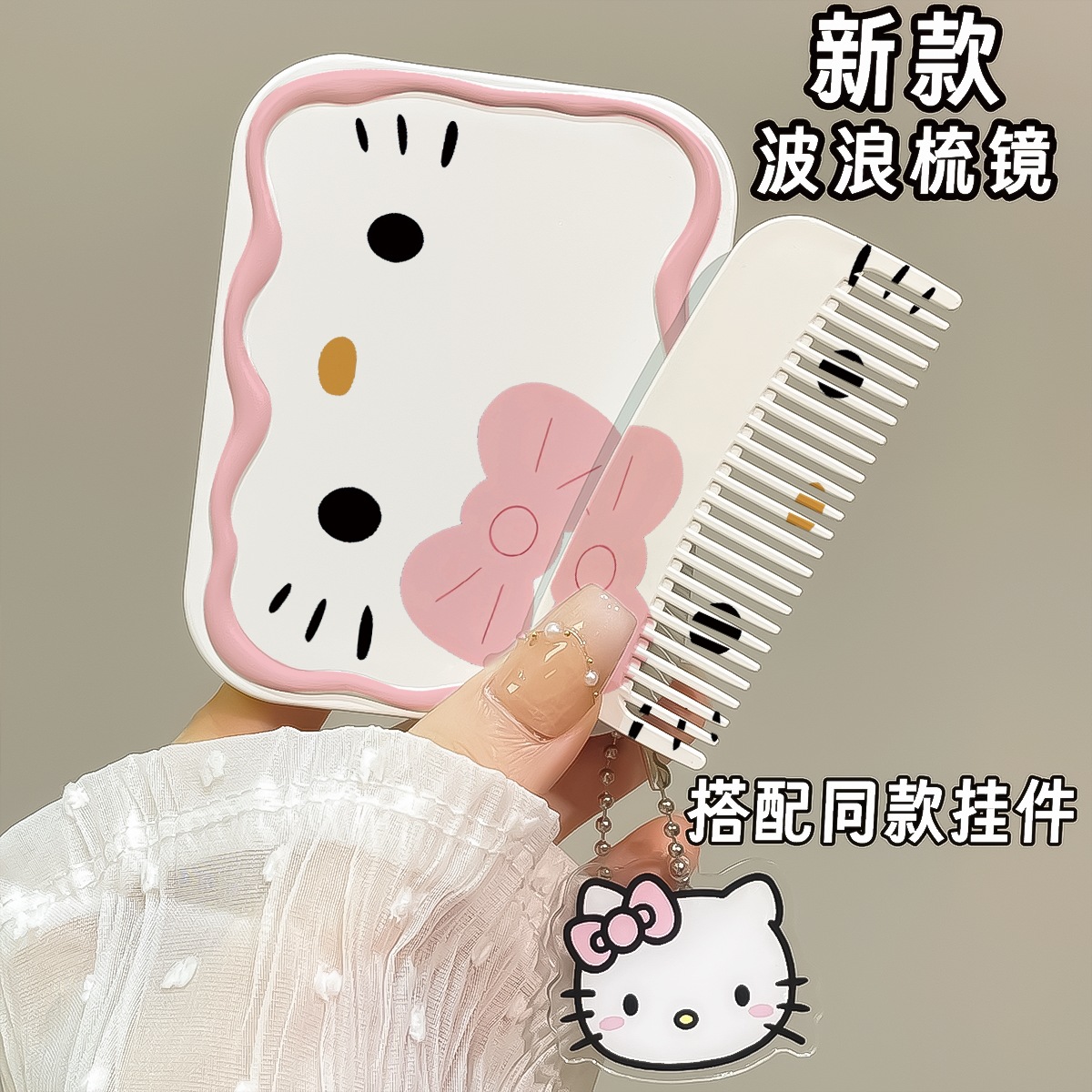 かわいいサンリオハローキティ小鏡学生携帯折り畳み鏡櫛二合一化粧鏡女