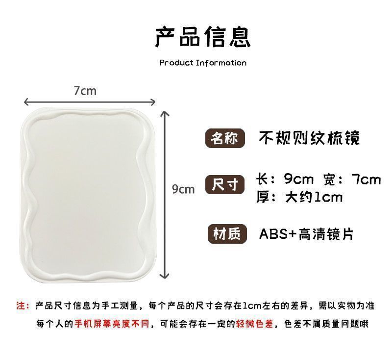 一体型ミラーコーム(ミラー+同型コーム),絵の描かれていない櫛(真っ白)