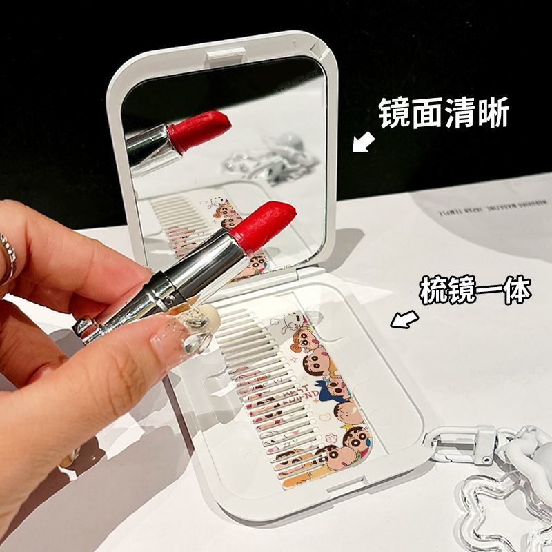 简约风格小新镜梳一体便携可爱小镜子随身带简约迷你折叠化妆镜