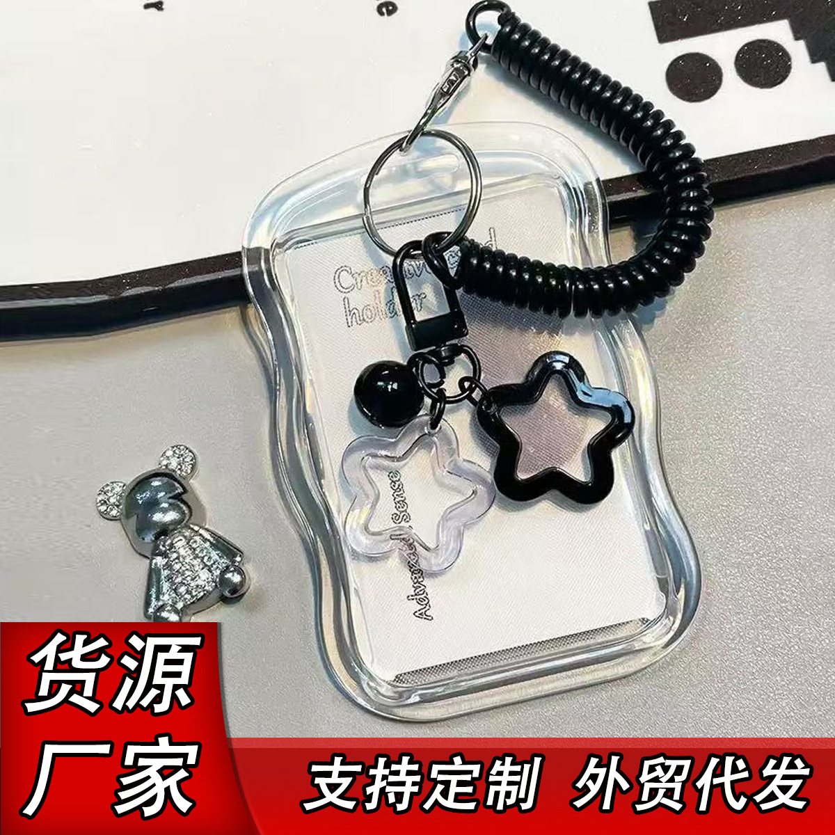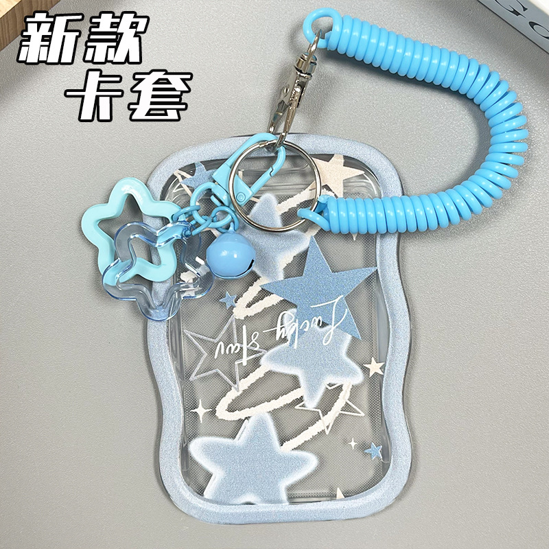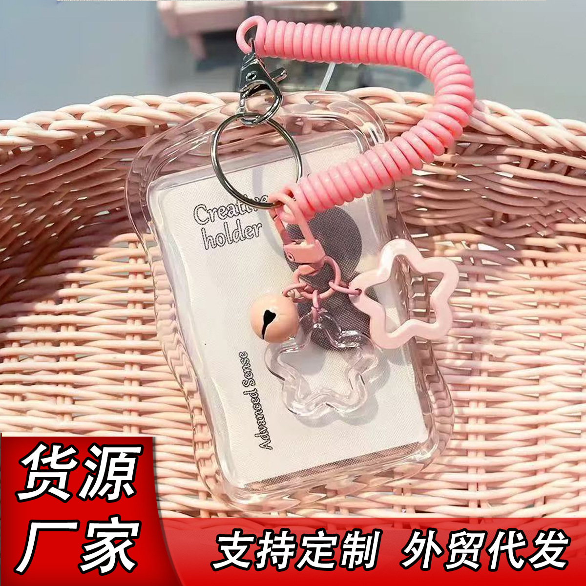 Ins透明カードセット学生地下鉄バスキャンパス食事カード追星立得小紅本スプリングペンダントキーホルダー