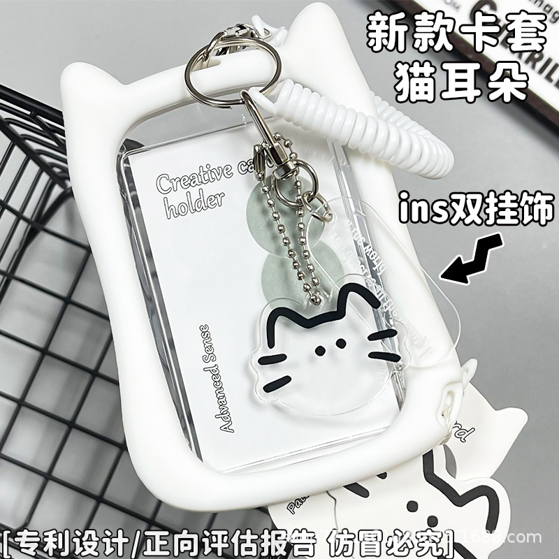 Ins透明猫耳かわいいカードセット学生キャンパスカード食事カードバス地下鉄ロープキャンパス証明書保護カバー