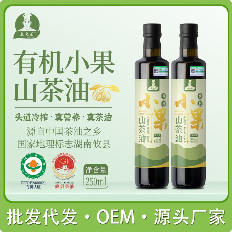 戴大厨小果有机山茶油250ml物理压榨家用热炒食用油一级茶籽油