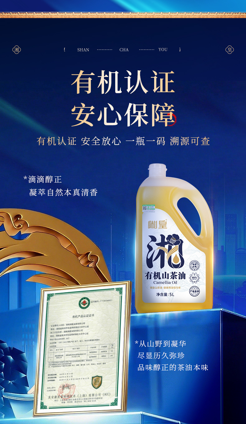 【湘皇】純ツバキ油シリーズ物理冷搾り茶油湖南特産茶樹油食用月子油