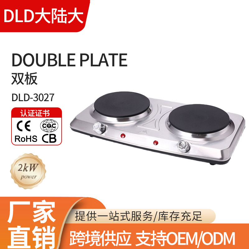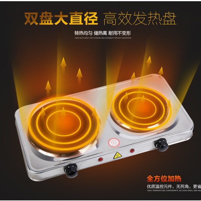 AKANE跨境出口不锈钢大小板2000W电炉可调温双头电热炉煮茶器双灶