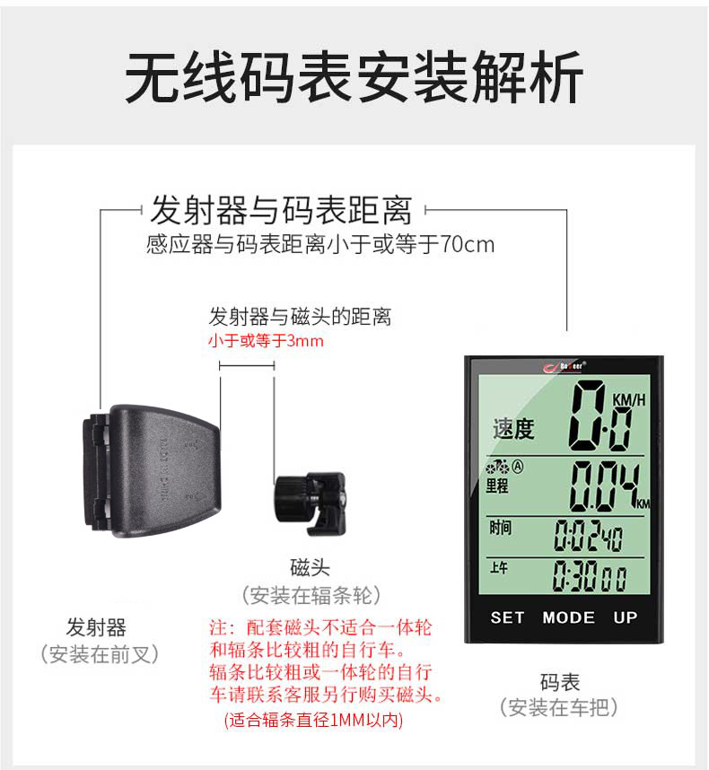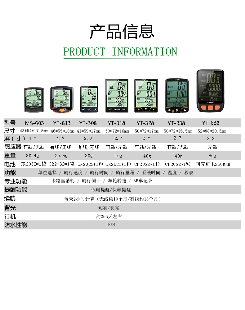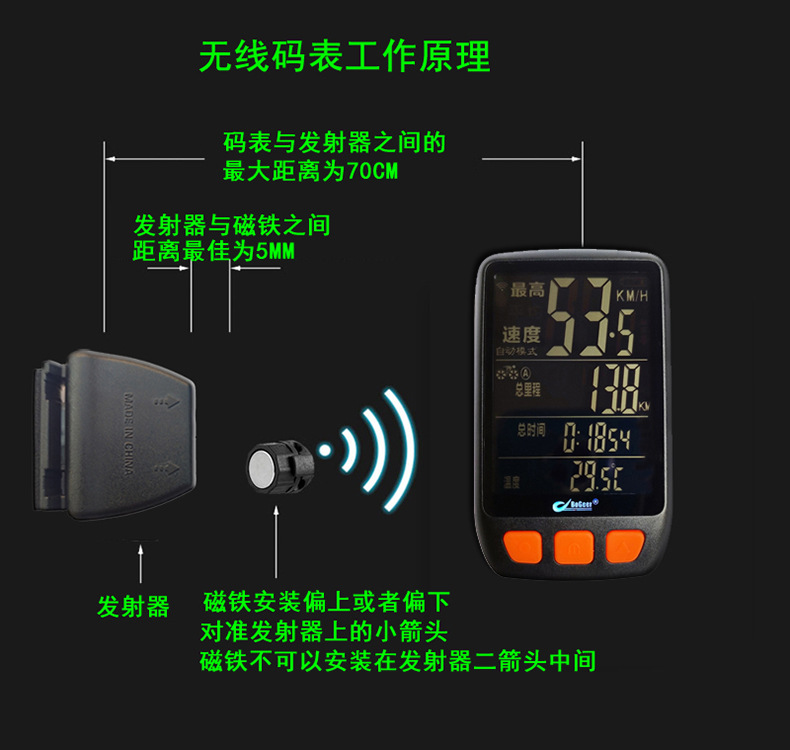 欢迎选购本公司自行车码表,本公司自2008成立至今,已有十几年的技术积累,采用进口芯片,功耗低,待机时间可长达两年,数据传输准确稳定。采购前请联系,因为库存量会随时有变化,请不要拍下马上付款,码表可定制,请详细沟通。
