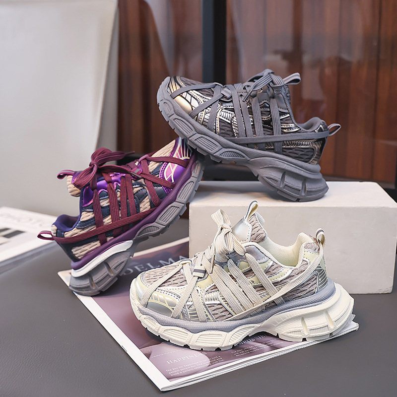 女の子のファッションのお父さんの靴2025春秋の新型の韓国版の子供は色の運動靴の男の子の軽いランニング靴をつづり合わせます。