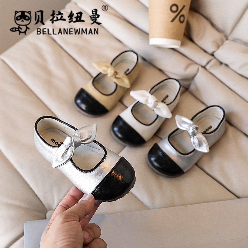 女の子の蝶結びの王女の靴2025春秋の新型の子供の香風は色のメアリー珍の靴の大きい子供の靴をつづり合わせます。