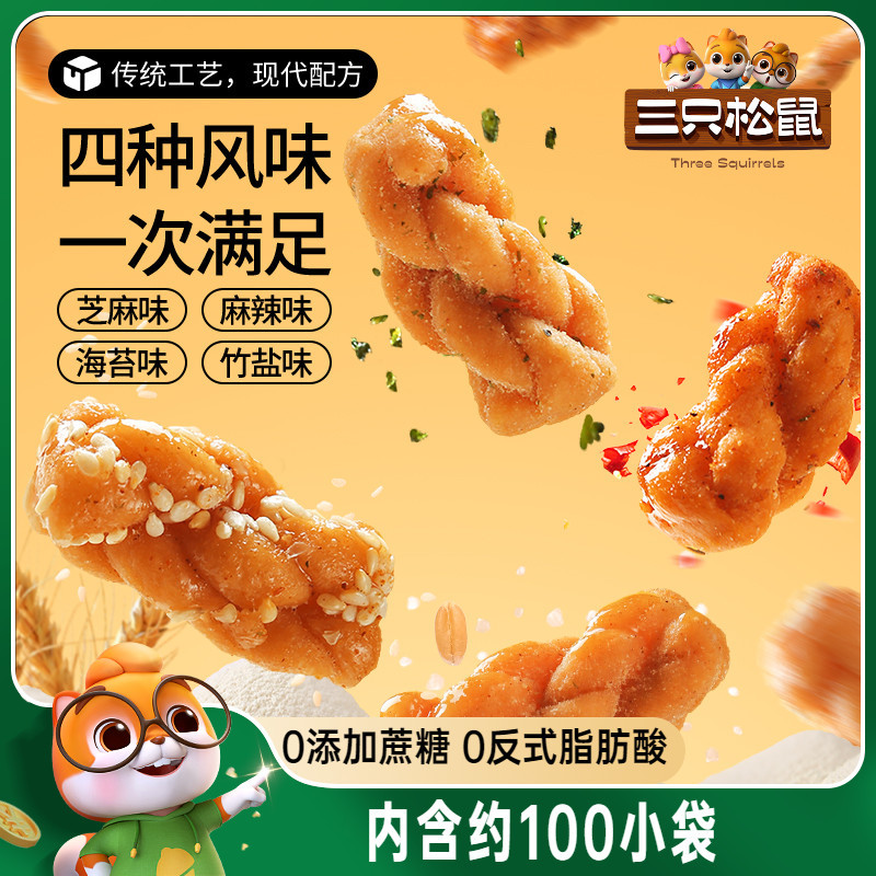 Three Squirrels_Twist 500g クリスピーツイスト ミックスフレーバー フルボックス オフィス 小袋 カジュアル スナック ペストリー