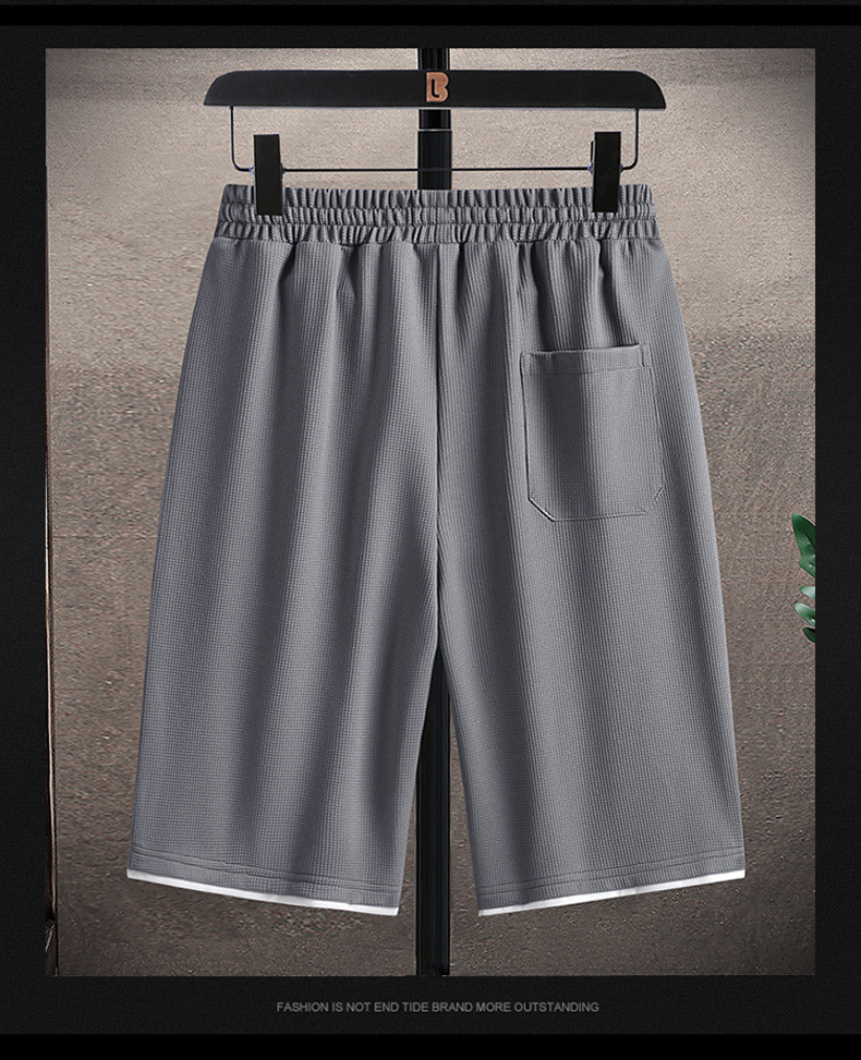 新商品のワッフルショートパンツの男性は2枚のゆったりとしたカジュアルな5分のズボンの夏の薄いタイプのファッションのバスケットボールのズボンのクロスボーダーの2
