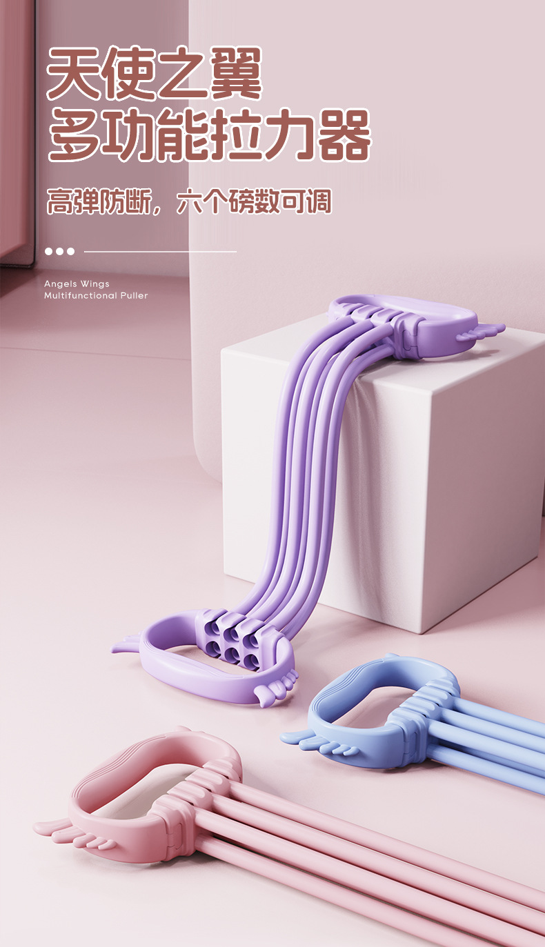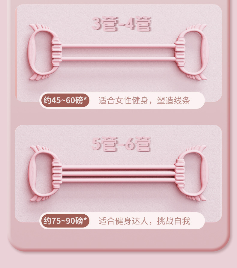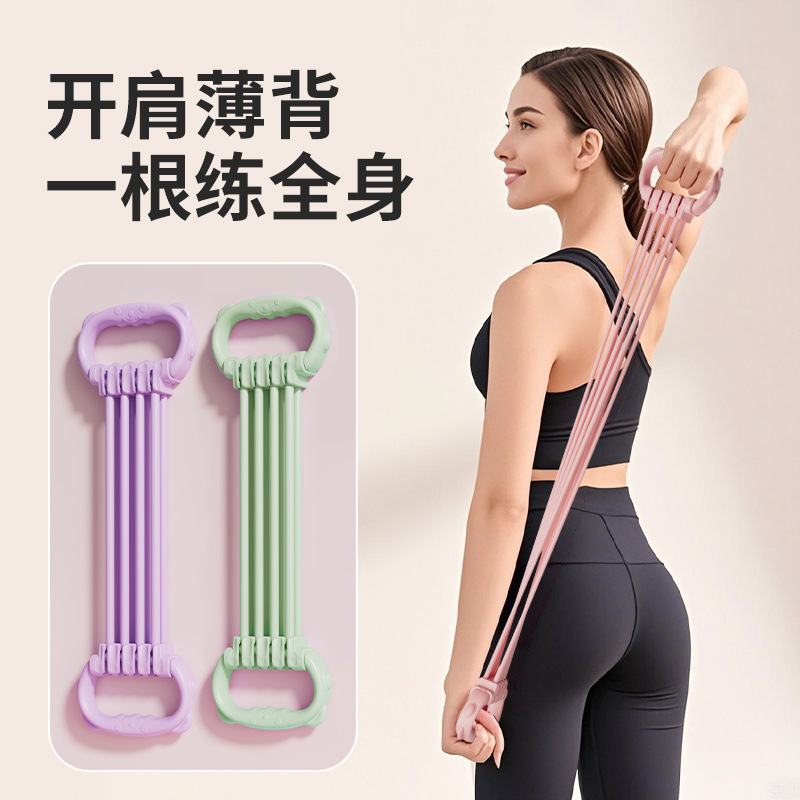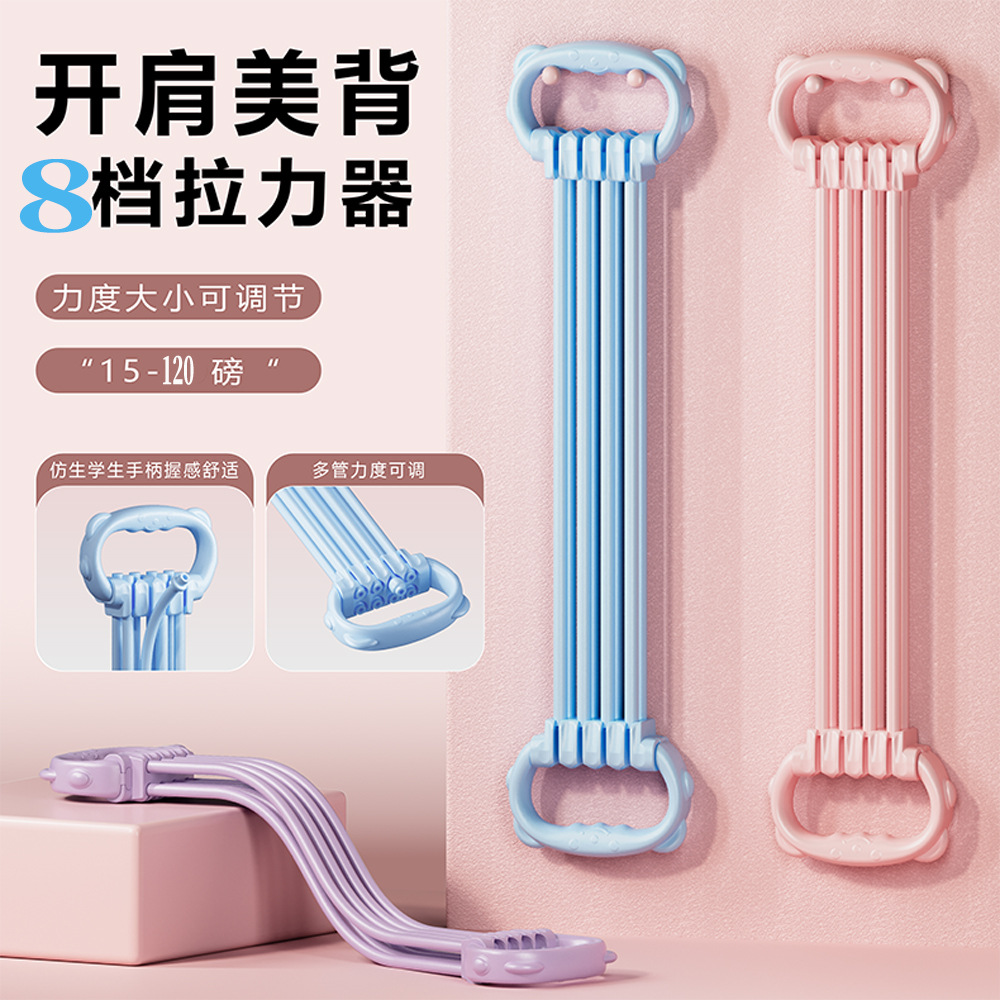 林光可调节磅数六管拉力器女开肩美背家用健身弹力带六管练背拉力
