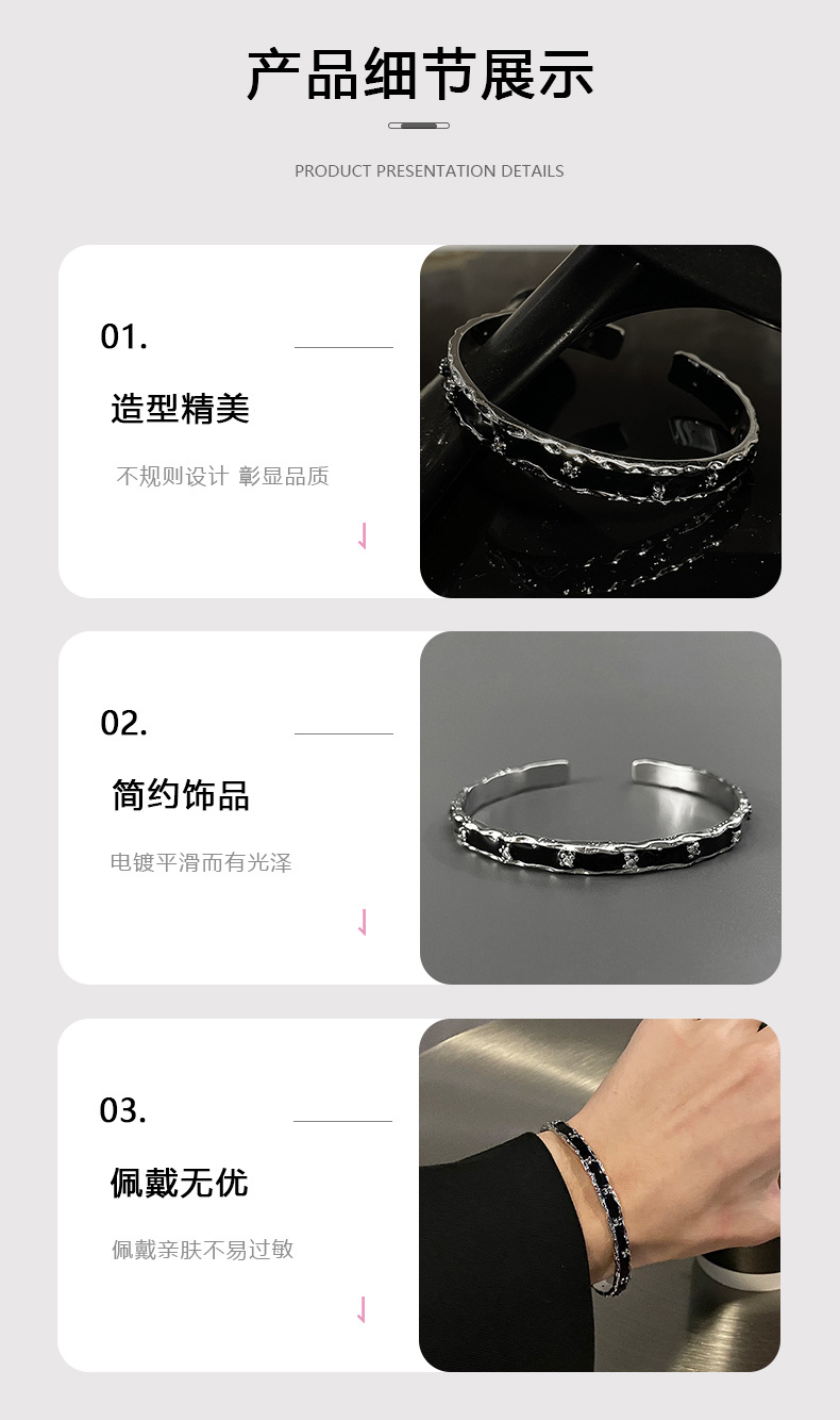 チタン鋼ブラックダイヤモンドスターラップブレスレットメンズニッチインシンプルブレスレットレディース多用途パーソナライズされたハイエンドアクセサリー