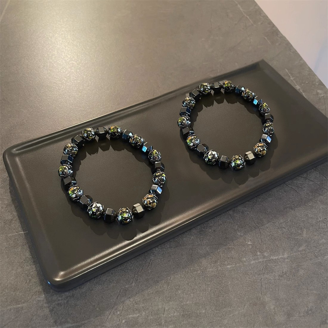 転運珠ブレスレット男子ビーズ男潮個性高級感潮男ブレスレット黒曜石男子手串アクセサリー
