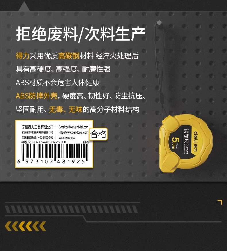 得力8203钢卷尺 5m米卷尺木工水电工自动收缩卷尺文具办公用品