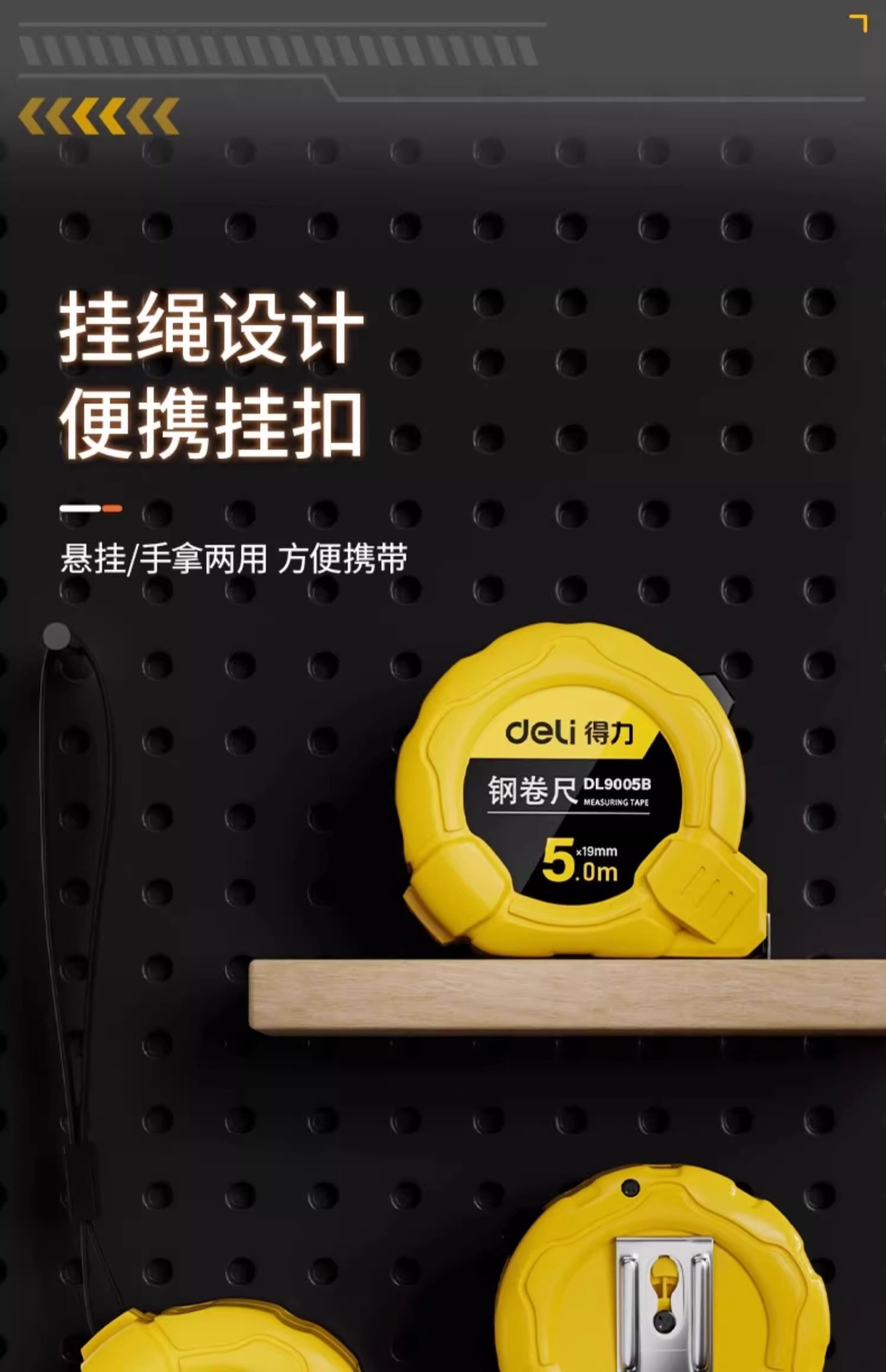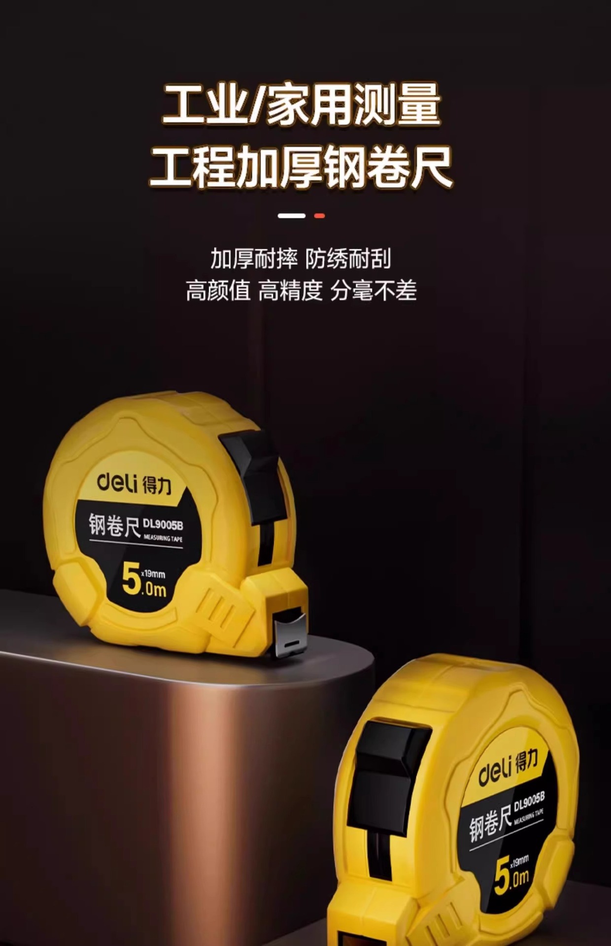 得力卷尺5米家用不锈钢卷尺子高精度耐磨防割手加厚加硬DL9002B