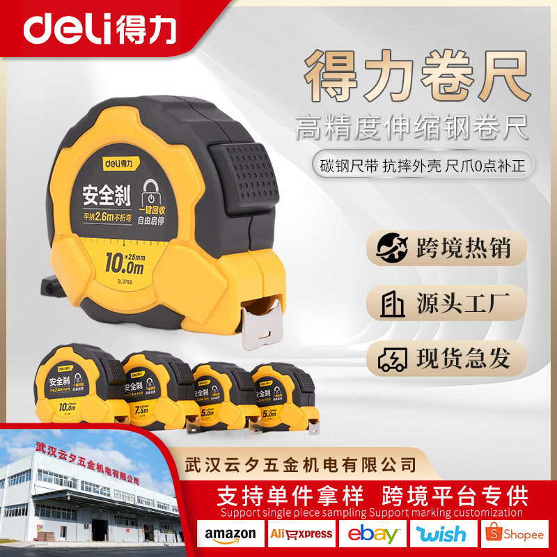 得力自锁钢卷尺5米7.5米10米方柄高精度带刻度DL3796DL3797