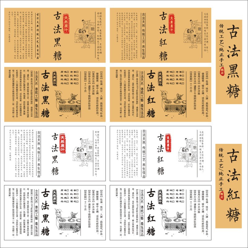 古法紅糖クラフト紙ラベルシール黒糖ラベル手作り手作り紅糖ステッカーE