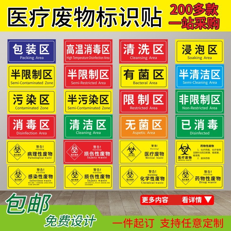 医療廃棄物一時保管標識警告札病院ごみ分類シール清潔区ステッカーm