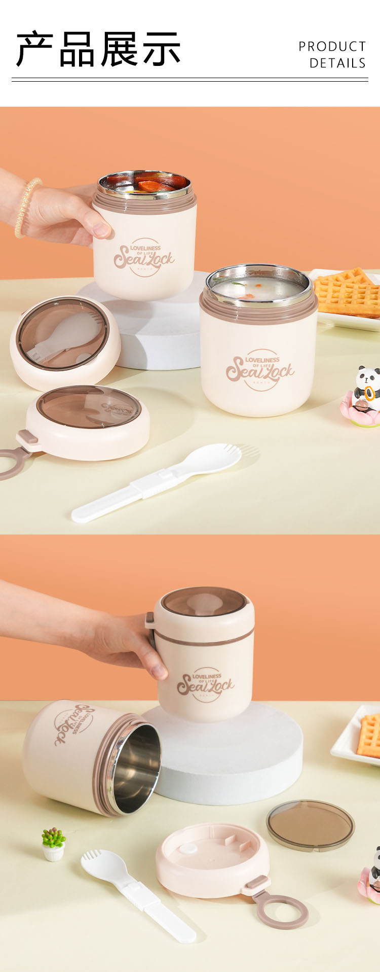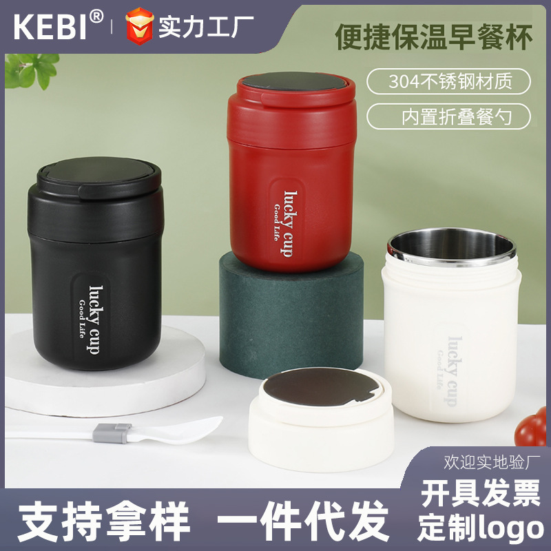 304ステンレス大容量保温蓋付きスプーン朝食カップオート麦カップ牛乳カップ学生サラリーマン携帯粥