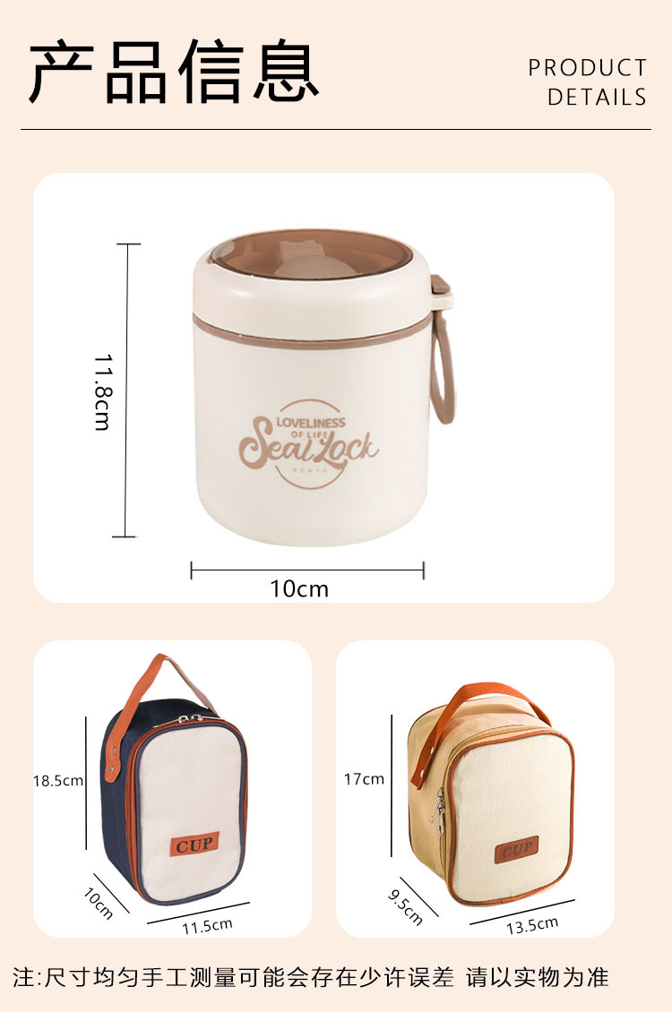 保温早餐杯304不锈钢带盖粥杯便携燕麦杯牛奶杯大容量密封汤罐杯