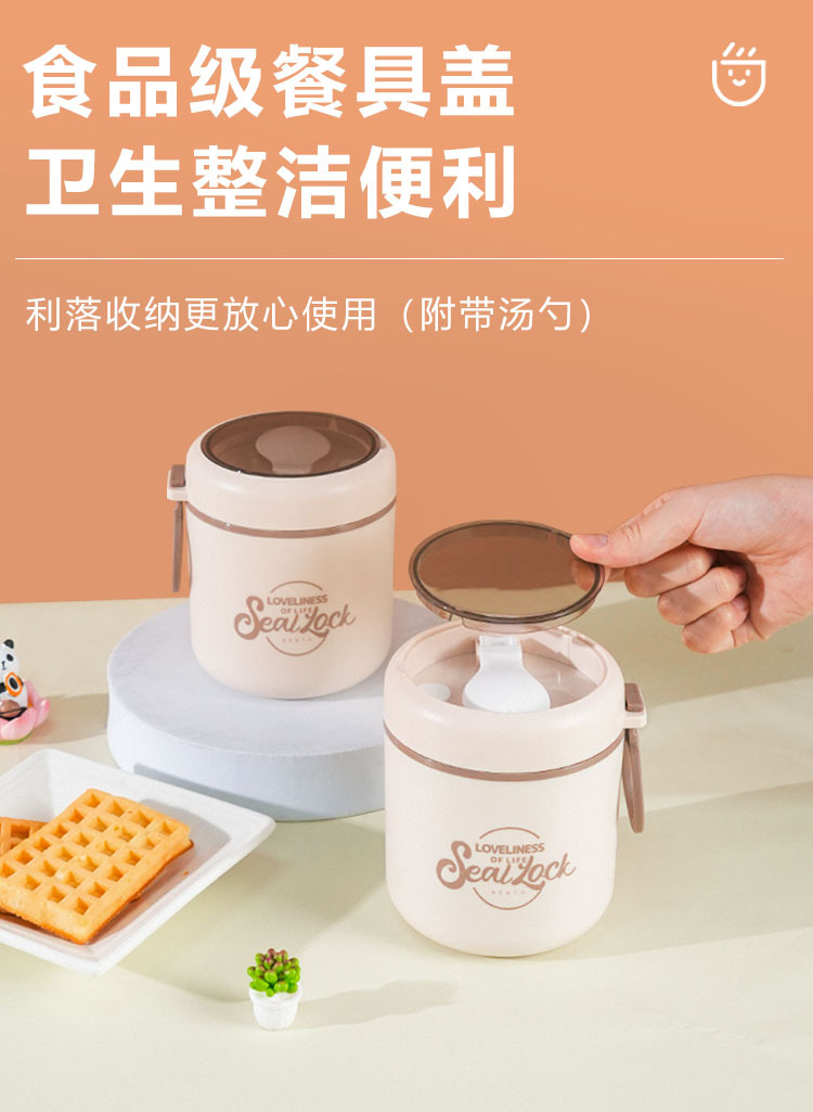 早餐杯便携上班族外带豆浆杯带盖勺粥杯隔夜燕麦杯酸奶杯保温杯子