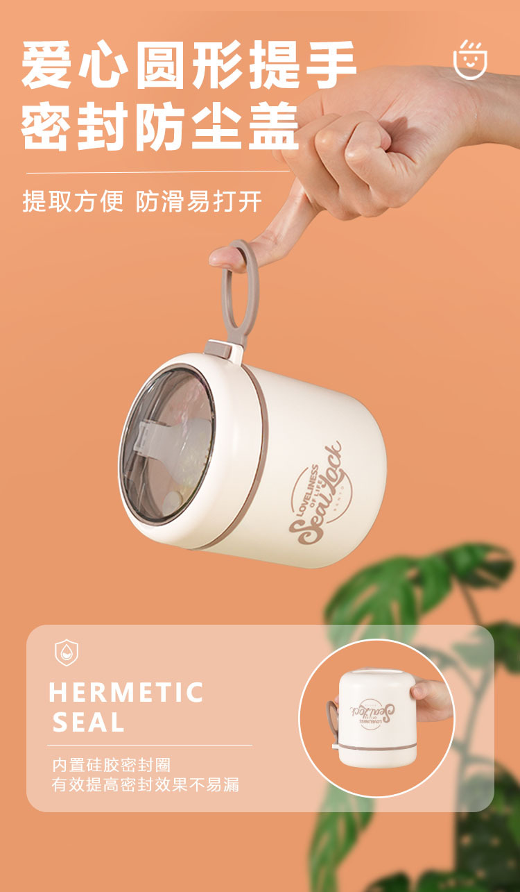 304ステンレス朝食カップスープカップ蓋付きスプーン携帯オート麦カップ密封牛乳カップ豆乳カップスープ缶