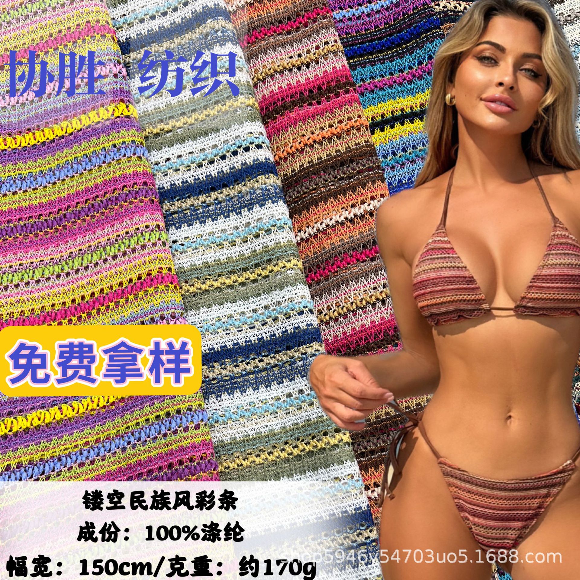 ポリエステル弾性トリコテージ春夏ストライプ生地水着衣類中空メーカー生地越境貿易供給