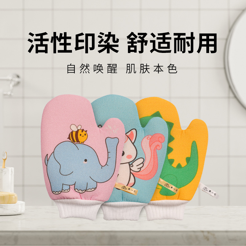 新しいタイプのお風呂タオルのデジタルプリントの子供服のお風呂タオルの子供服の細い砂の無痛な下で泥の家庭用入浴手袋を洗います。